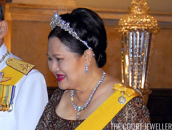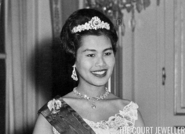 Queen Sirikit’s Diamond Floral Tiara: A striking, large tiara featuring modern diamond floral designs. Worn by Queen Sirikit.