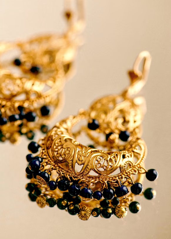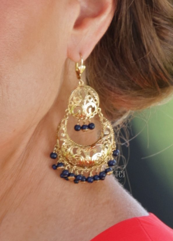 She accessorized with a pair of statement earrings inspired by traditional Indian jewelry design.