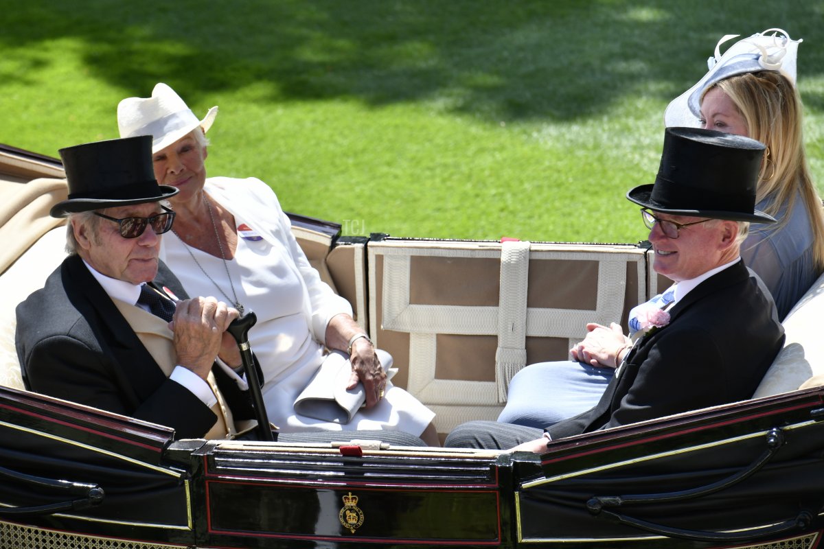 There were no royals in carriage number four in today’s procession—but there was a woman who has portrayed more than one famous royal lady. Dame Judi Dench rode alongside her partner, David Mills. They were joined by two familiar figures in the world of racing: William S. Farish IV and his wife, Kelley. The Farish family owns Lane’s End Farm, a prominent Thoroughbred breeding farm in Kentucky. The Farishes were good friends of the late Queen Elizabeth II, who often stayed at the farm during visits to America.