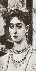 Almost a decade later, in 1871, she posed in the tiara for this striking photographic portrait as well. Unfortunately, Alice met the same sort of untimely end as her father, dying of diphtheria in 1878, exactly seventeen years to the day after Prince Albert’s death. One of her daughters, Marie, also died. The remaining five children survived: Victoria (grandmother of the Duke of Edinburgh), Alix (the last Empress of Russia), Ella (also later a Russian grand duchess—she was the only family member who did not suffer from the illness), Irene, and her only surviving son, Ernst.