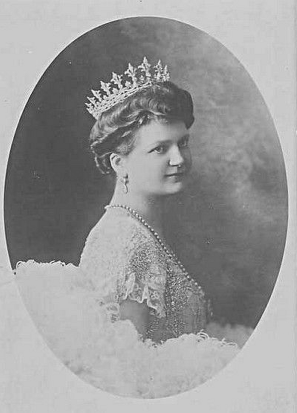 As we wind down the month of March, it’s time for yet another glimpse at the glittering jewels worn by Princess Victoria Melita of Edinburgh and Saxe-Coburg and Gotha. So far, we’ve looked at a suite of jewelry with links to her maternal Russian inheritance, the tiara she wore on her first wedding day, and the meander kokoshnik that she wore during her second marriage. Today’s piece is a bit different—it’s a diamond tiara that she wore frequently but that never really belonged to her personally at all.