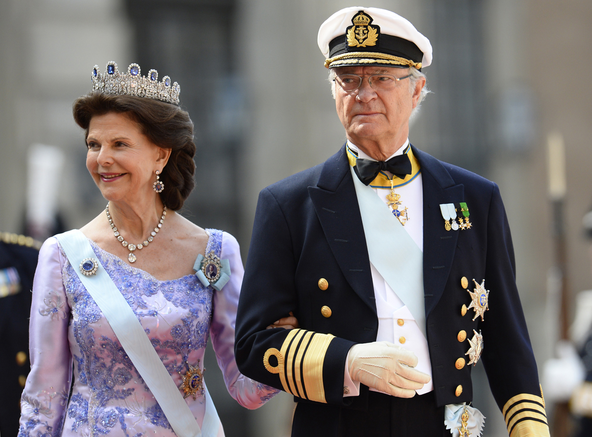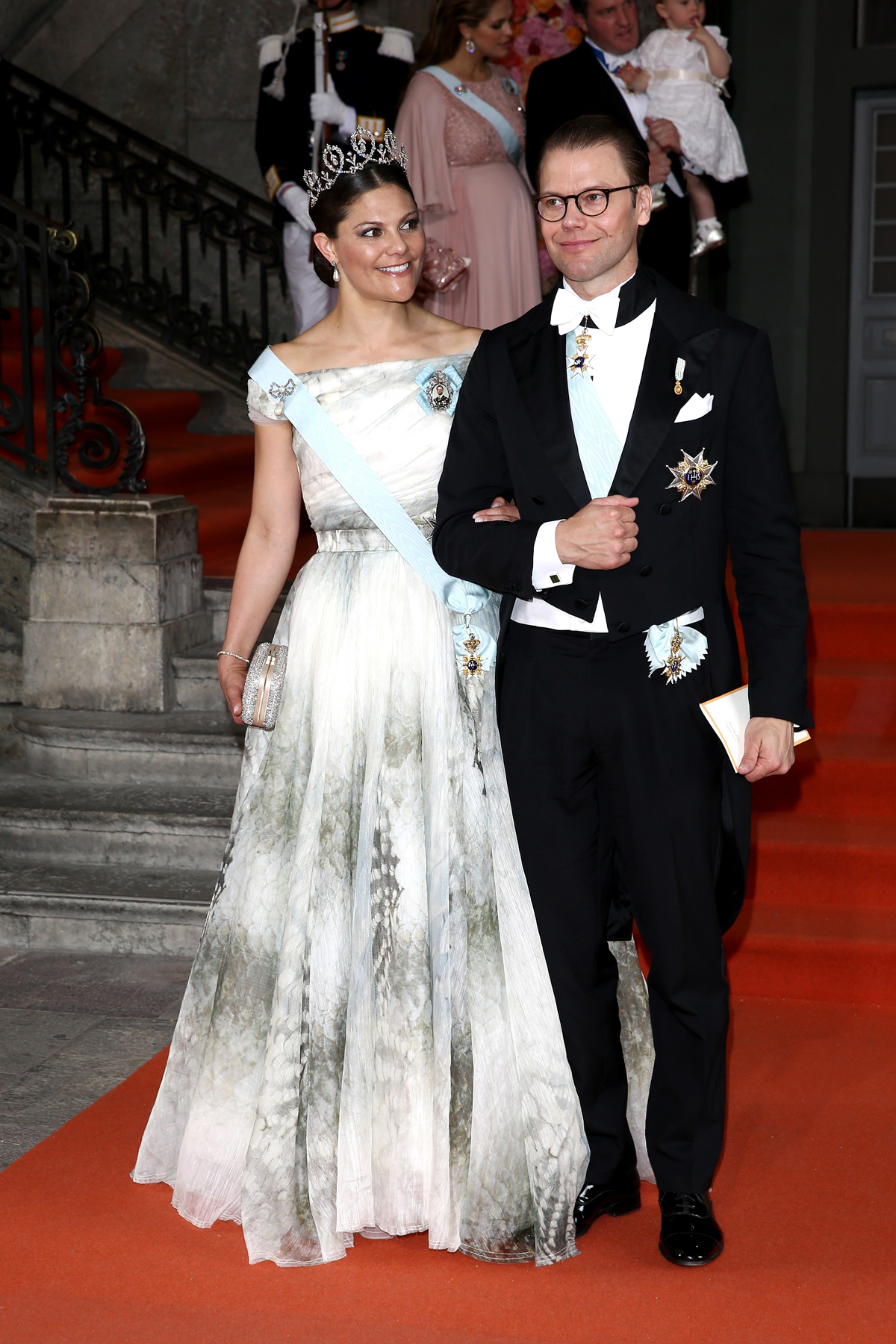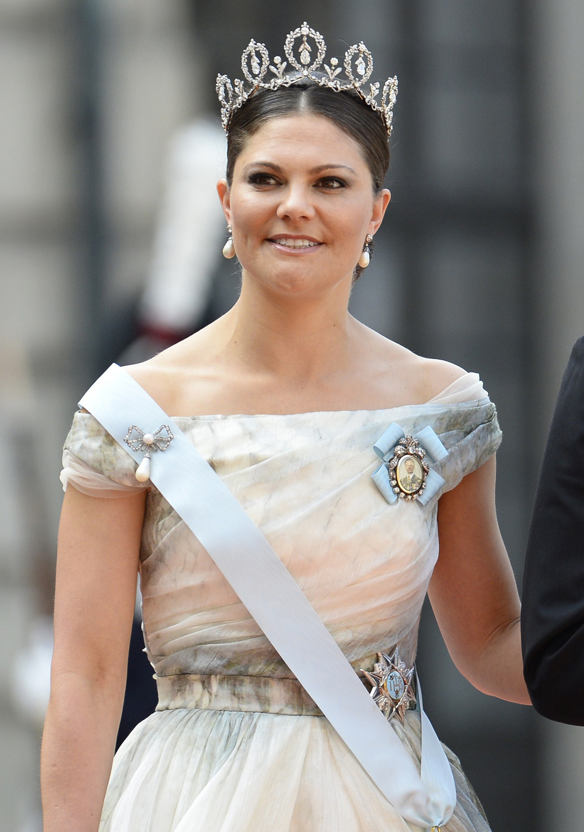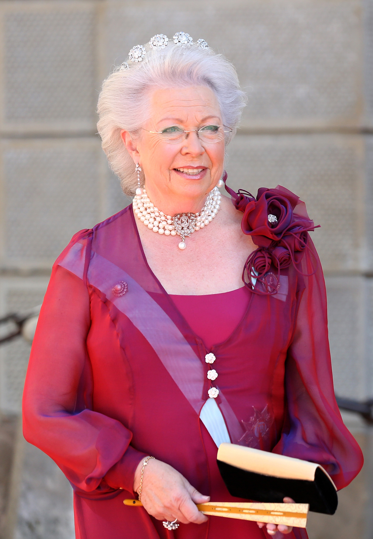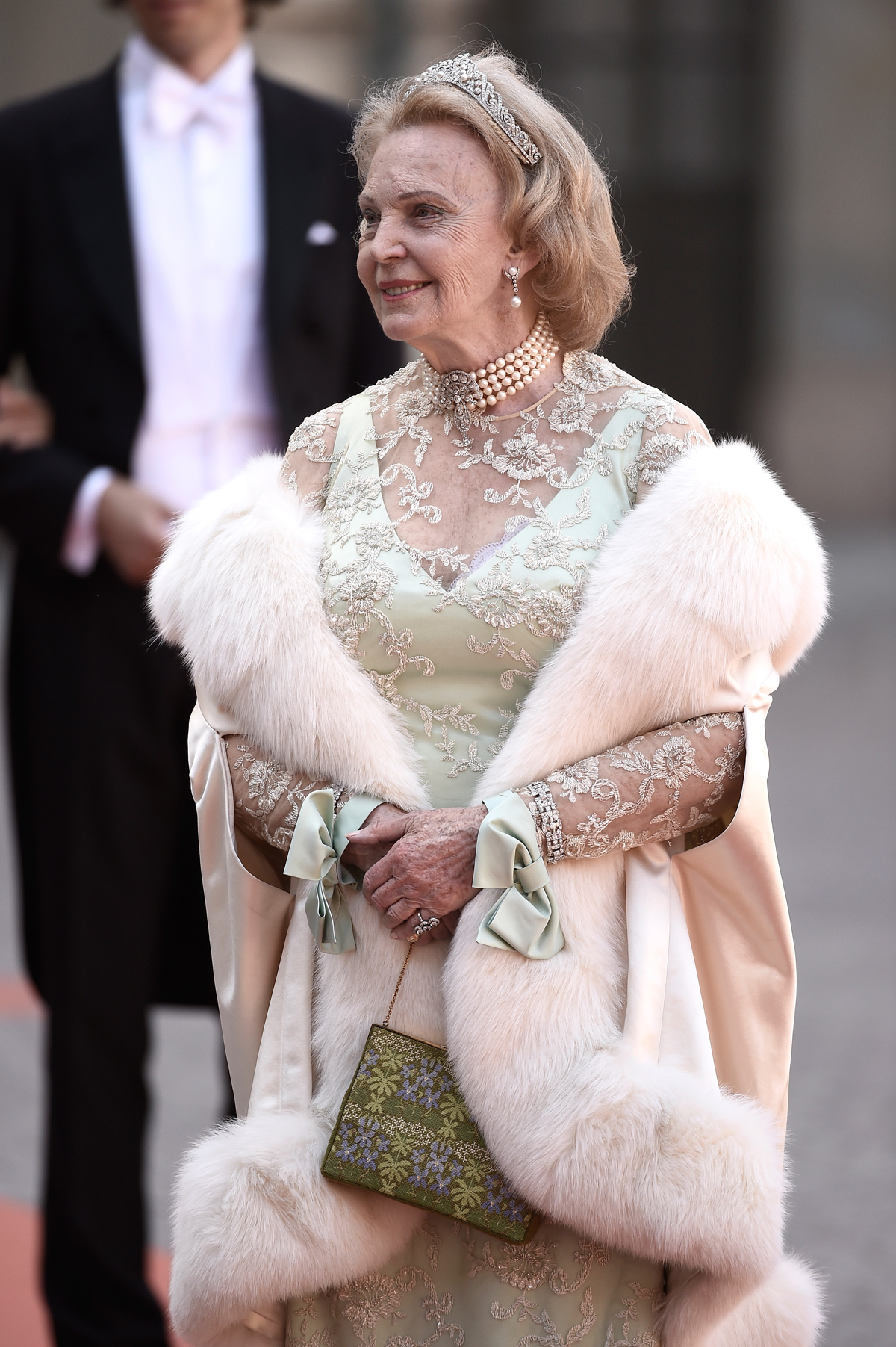 The king’s youngest sister, Princess Christina, wore the family’s Diamond Six-Button Tiara with pearl and diamond jewelry.