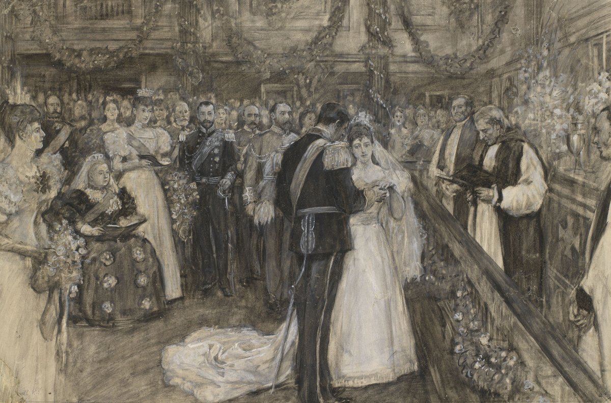 Over the next few months, papers reported that the royals squabbled as they tried to set a date for the wedding. One scheduling stumbling block was the unexpected death of Prince Henry of Battenberg, husband of the bride’s aunt, Princess Beatrice. Henry contracted malaria while serving with the navy in Africa, and there were conflicts in the family over whether or not the marriage could take place during the mourning period. In the end, the wedding was fixed for Wednesday, July 22, 1896, and Beatrice and her children did not attend.