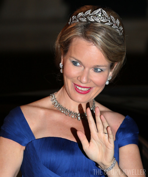 Just a few weeks later, she wore the tiara again for a banquet held during a state visit from the Dutch royal family to Brussels.