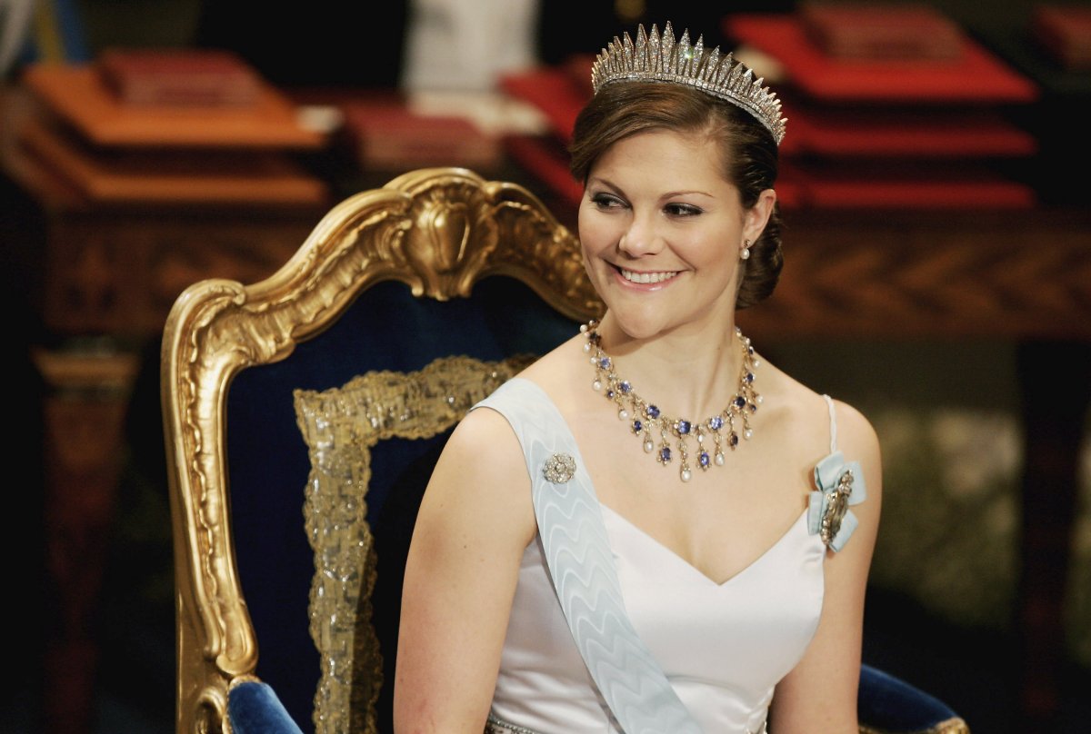 Crown Princess Victoria has also worn her namesake’s necklace. In one of her most memorable appearances in the necklace, Victoria paired it with another of Victoria of Baden’s jewels, the Baden Fringe Tiara, at the Nobel Prize ceremony in 2005.
