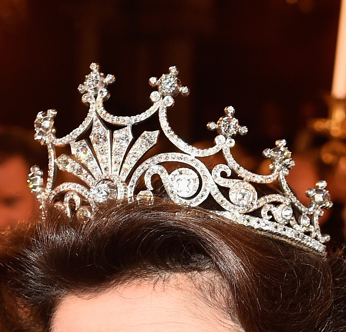 As the tiara’s name suggests, it was made for Queen Sofia of Sweden and Norway (born Princess Sophia of Nassau) around 1860. It has been in Sweden’s royal vaults ever since, and its subsequent wearers included Queen Louise, Princess Lilian, and Princess Birgitta. Today, the tiara is worn almost exclusively by Queen Silvia, who dons it often for gala events, including the annual Nobel Prize ceremony and banquet in Stockholm. You can read a more complete history of the tiara over here!