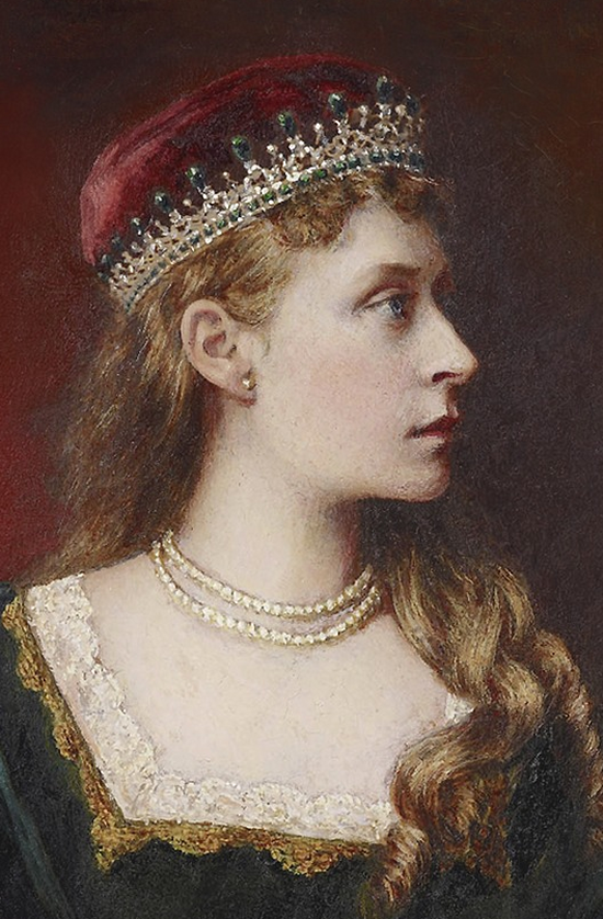 Exactly how long Queen Victoria kept the tiara—and what she did with it—aren’t precisely clear. In the 1880s, a granddaughter, Princess Victoria of Hesse and by Rhine (grandmother of the Duke of Edinburgh), was depicted wearing the tiara as part of a costume. And when an inventory of Victoria’s jewels was made in 1896, the emerald tiara was not included.