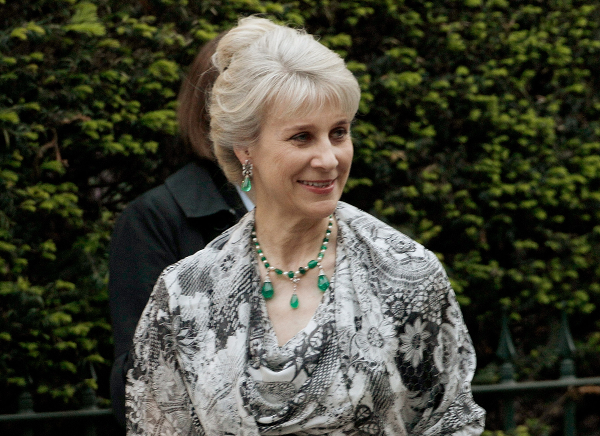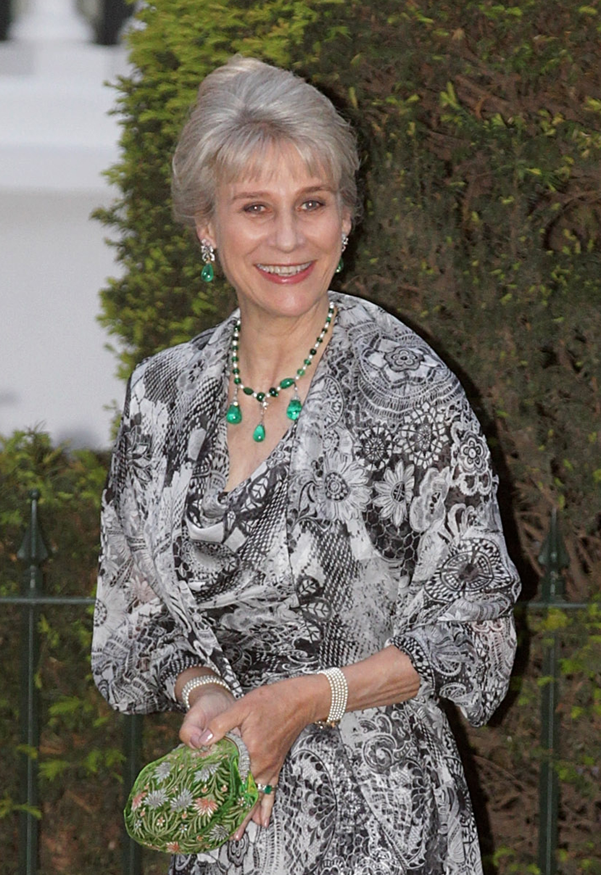 The necklaces are now worn by Alice’s daughter-in-law, Birgitte, the current Duchess of Gloucester. She has also worn different lengths and configurations of the necklaces. In the photo above, taken at the Duke and Duchess of Cambridge’s pre-wedding gala in 2011, she wears a shorter version with alternating emeralds and pearls, along with both pendants and one of the pendants from the suite’s brooch. She also wore the alternating shorter necklace alone on Ladies’ Day at Royal Ascot in 2001.