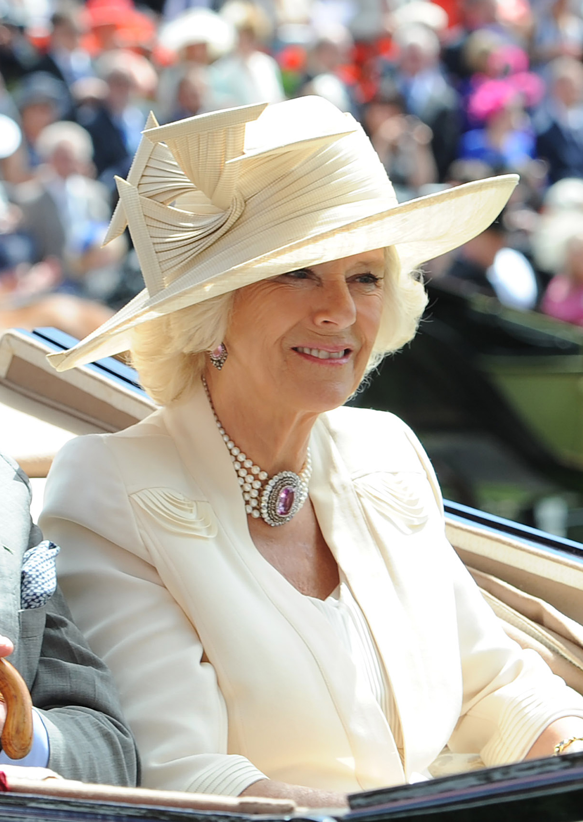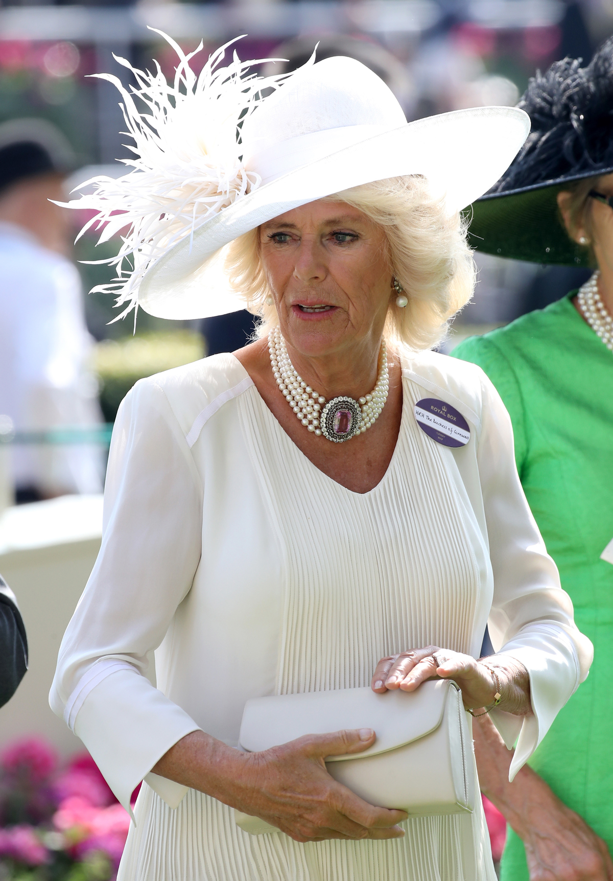 The necklace can also often be spotted on Camilla at Royal Ascot. Above, she pairs it with pearl earrings at the racecourse in June 2017.