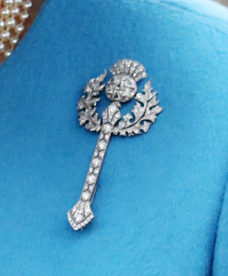 In June 2019, the Queen paired the brooch with a brilliant royal blue ensemble to celebrate the 20th anniversary of Scotland’s Parliament.