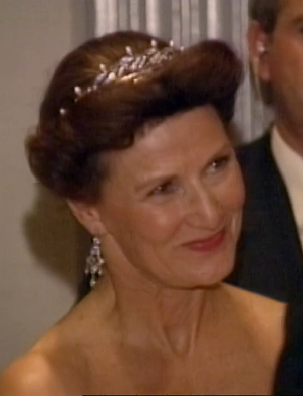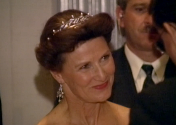 On October 11, 1995, the King and Queen attended a special reception at the Waldorf-Astoria Hotel in New York City. In the footage from that event, Asbjørn noticed that Sonja was wearing a rather unexpected jewel: King Olav’s Gift Tiara.