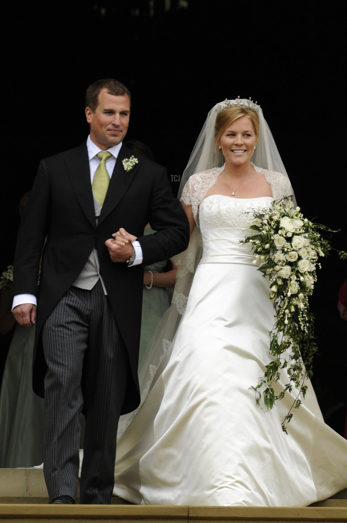 Autumn completed her bridal look with a pair of diamond and pearl earrings and a coordinating necklace with a diamond and pearl pendant. The jewels were reportedly her wedding gift from Peter. We’ve seen her wear the classic set often at royal events during the couple’s marriage, including an appearance at the wedding of the Duke and Duchess of Cambridge in 2011.