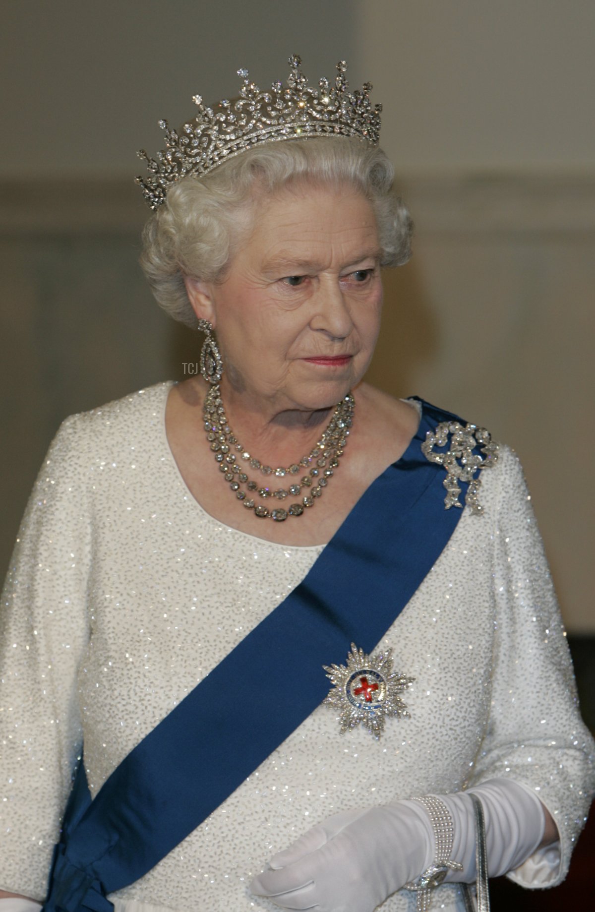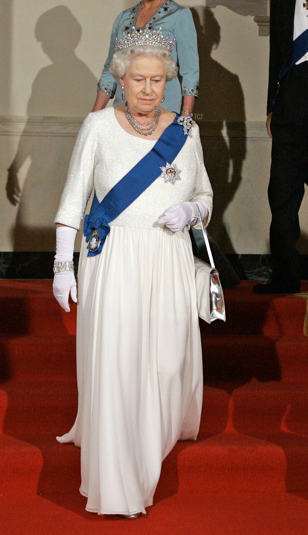 Fourteen years ago today, the Queen and the Duke of Edinburgh were hosted for a formal state dinner at the White House in Washington, D.C. Today, we’ve got a look at the jewels she wore for the dinner, which was held on May 7, 2007.