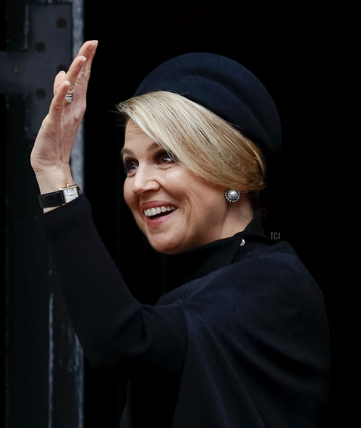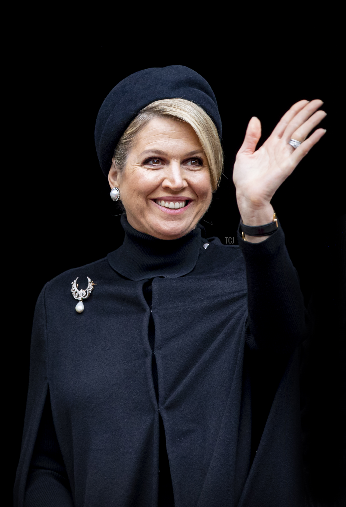 Willem-Alexander and Maxima waved to the small gathering of people as they arrived at the Royal Palace, which is also on Dam Square, for the ceremony. The moment gave us a good look at the jewels Maxima had chosen for the occasion.