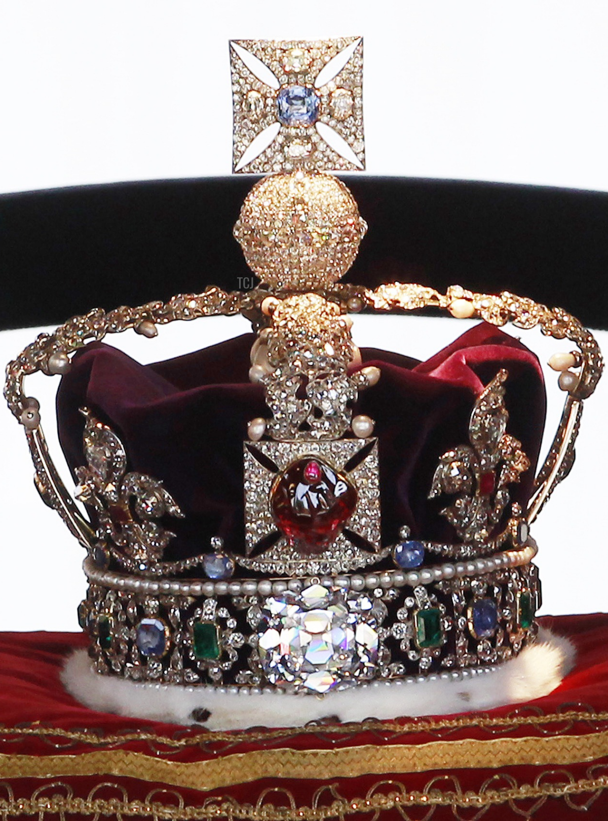 When the Cullinan II was added to the crown in 1909, the Stuart Sapphire was moved to the back of the jewel. The large blue sapphire, which weighs in at 104 carats, is said to be the same gem taken by King James II when he fled the country after the Glorious Revolution in 1688. An agent for King George IV later purchased the sapphire from a broker, who claimed he had gotten the stone from one of James’s descendants, Cardinal York.
