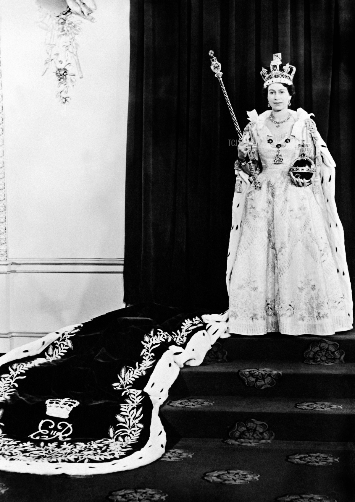 Queen Elizabeth II wore the crown for the first time as she left Westminster Abbey after her coronation, and above, she wears it for an official coronation photograph taken at Buckingham Palace following the June 1953 ceremony.