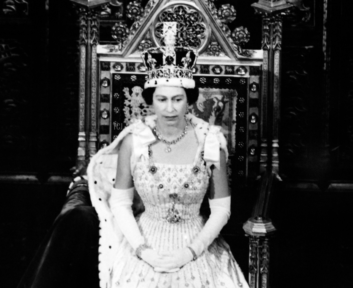 All monarchs from Queen Victoria to Queen Elizabeth II have posed for portraits with the Imperial State Crown. In 1838, Queen Victoria wore the brand-new crown for her official coronation portrait, painted by Sir George Hayter. (Note the Stuart Sapphire situated below the Black Prince’s Ruby.)
