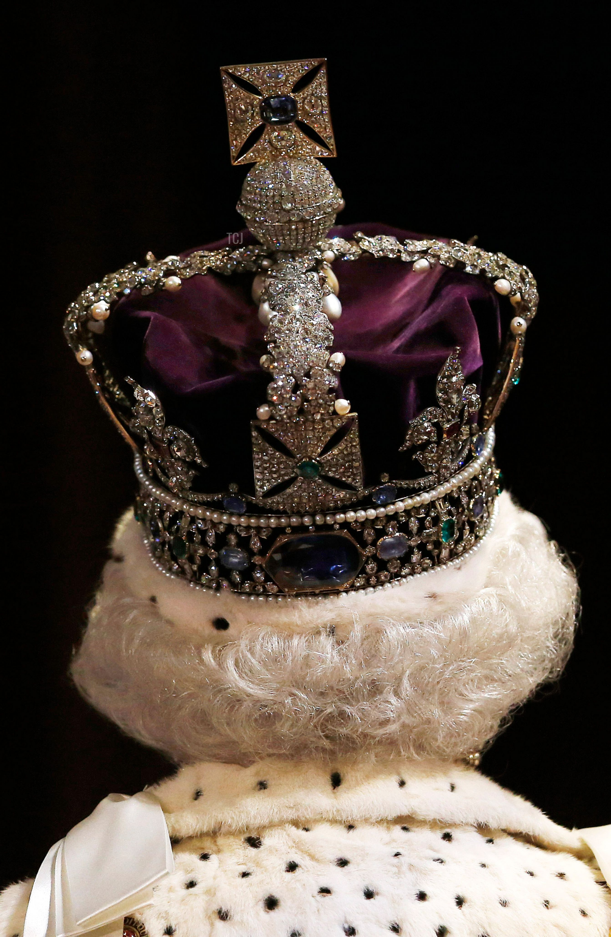 The Queen never wore the crown (which reportedly weighs a little over two pounds) on her journey to and from parliament for the State Opening, preferring instead to travel in the George IV Diamond Diadem. The Imperial State Crown got to travel in its own car for the event, on a special little platform that allowed the public to view it through the car windows during the drive.