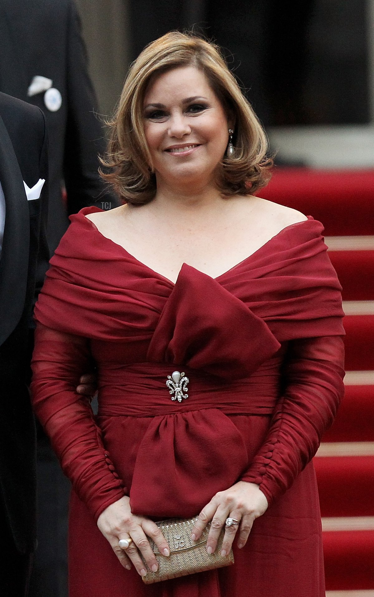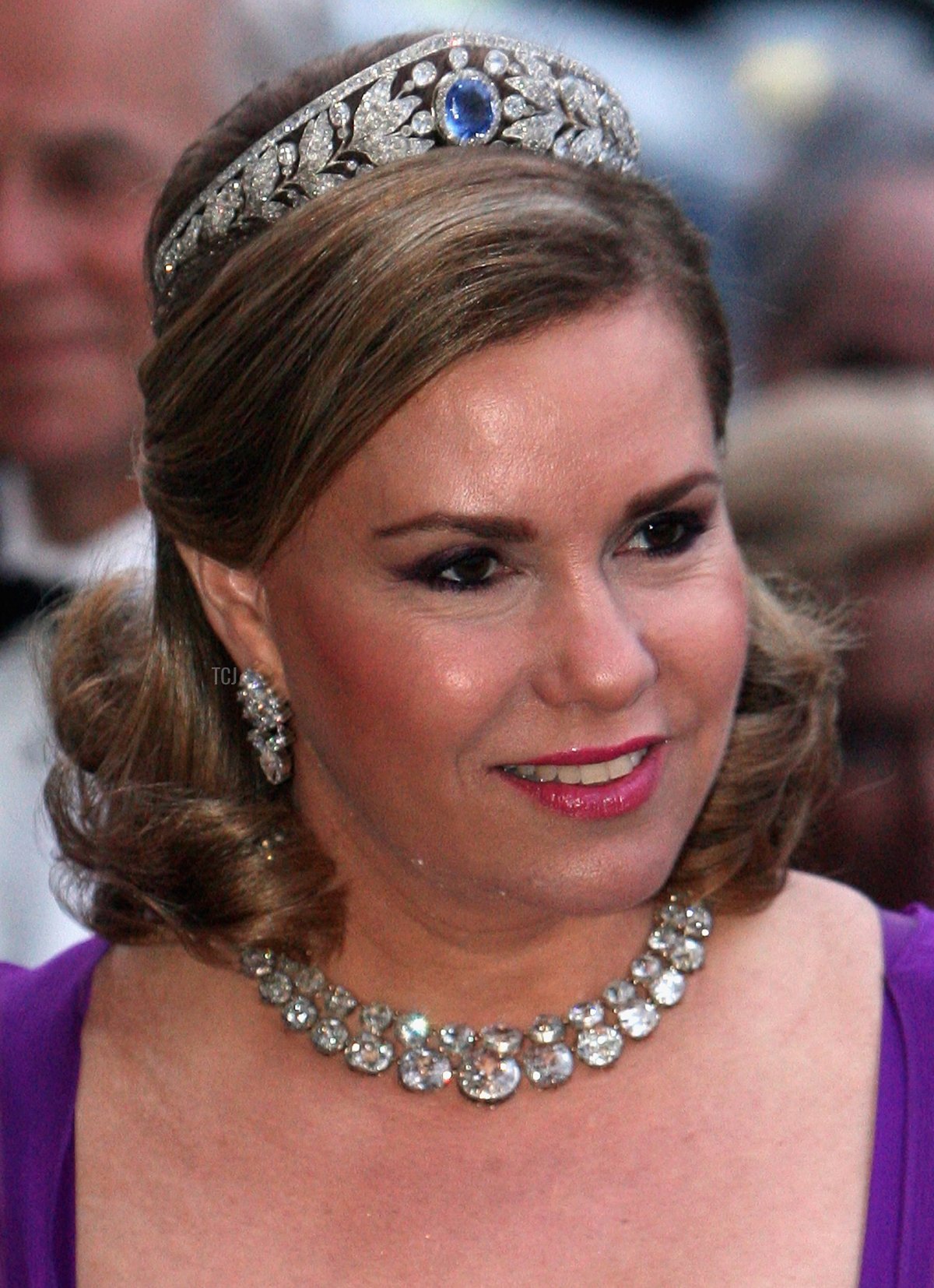 This classic brooch, which is designed in the shape of a fleur-de-lis, features a large pear-shaped pearl as its centerpiece. It belonged to Princess Ingeborg of Sweden, the great-grandmother of Grand Duke Henri. Grand Duchess Maria Teresa often wears the brooch for important royal occasions, including the Swedish royal wedding in 2010 and the British royal wedding in 2011.