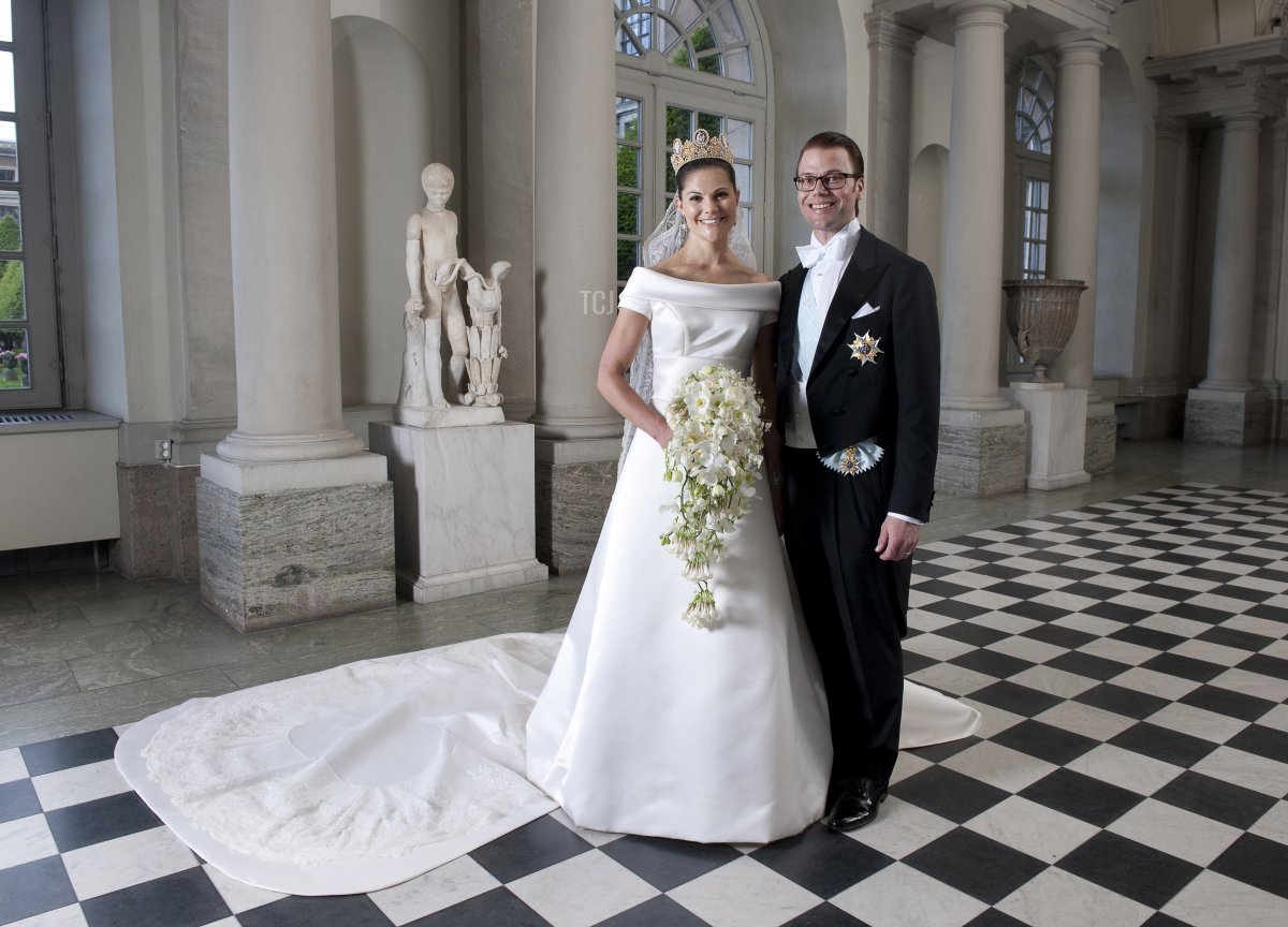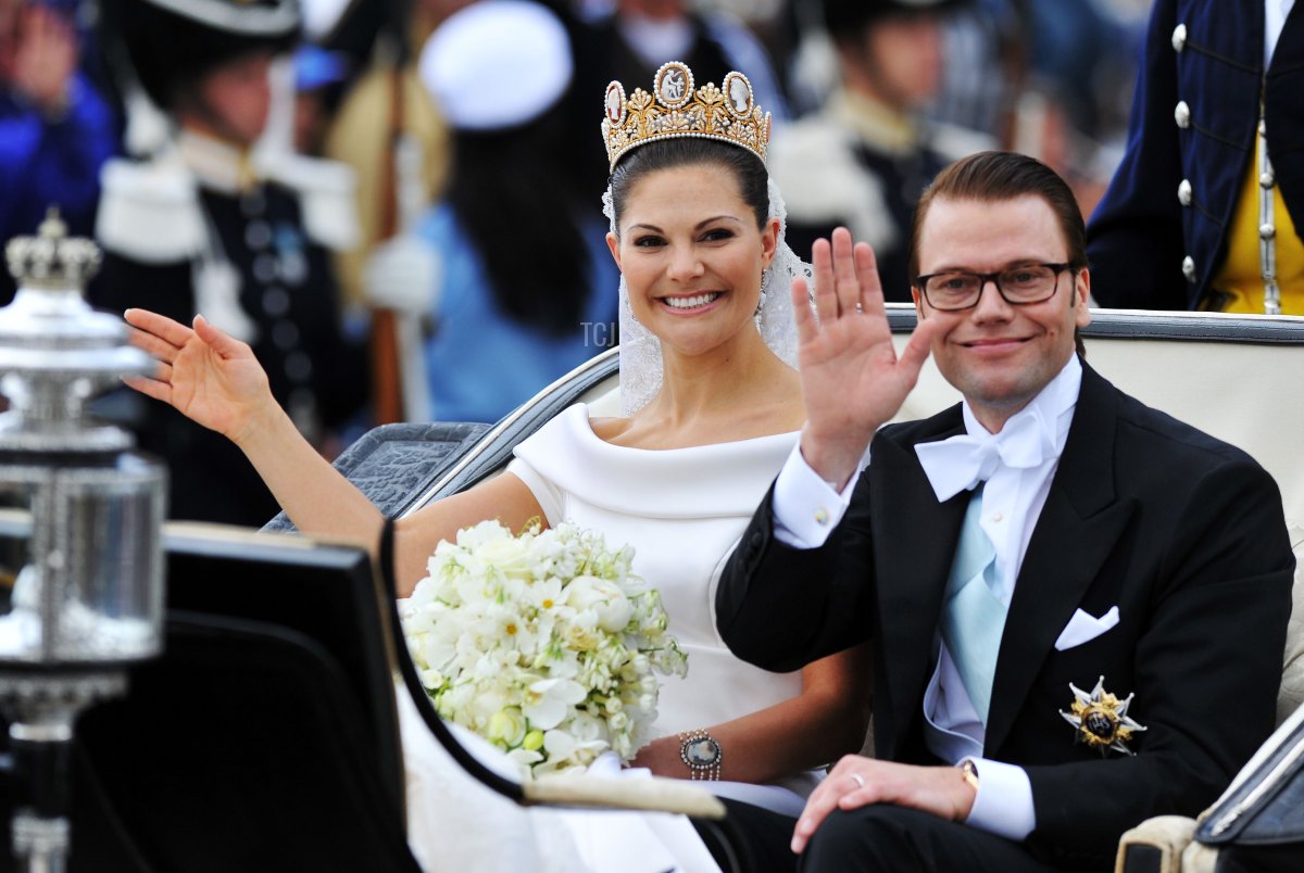 On June 19, 2010—eleven years ago tomorrow—Crown Princess Victoria of Sweden married her longtime partner, Daniel Westling. The pair were wed in a ceremony at Stockholm’s recently-refurbished cathedral before more than a thousand guests. Victoria chose an off-the-shoulder gown by Swedish designer Pär Engsheden for the wedding.