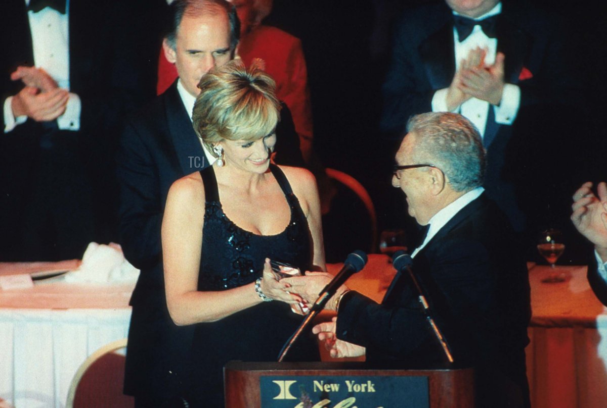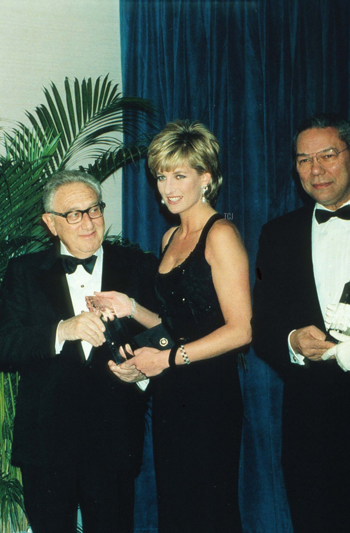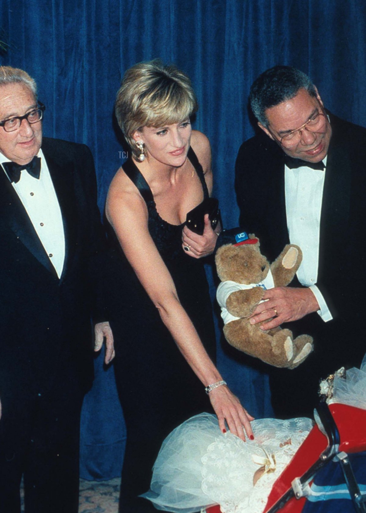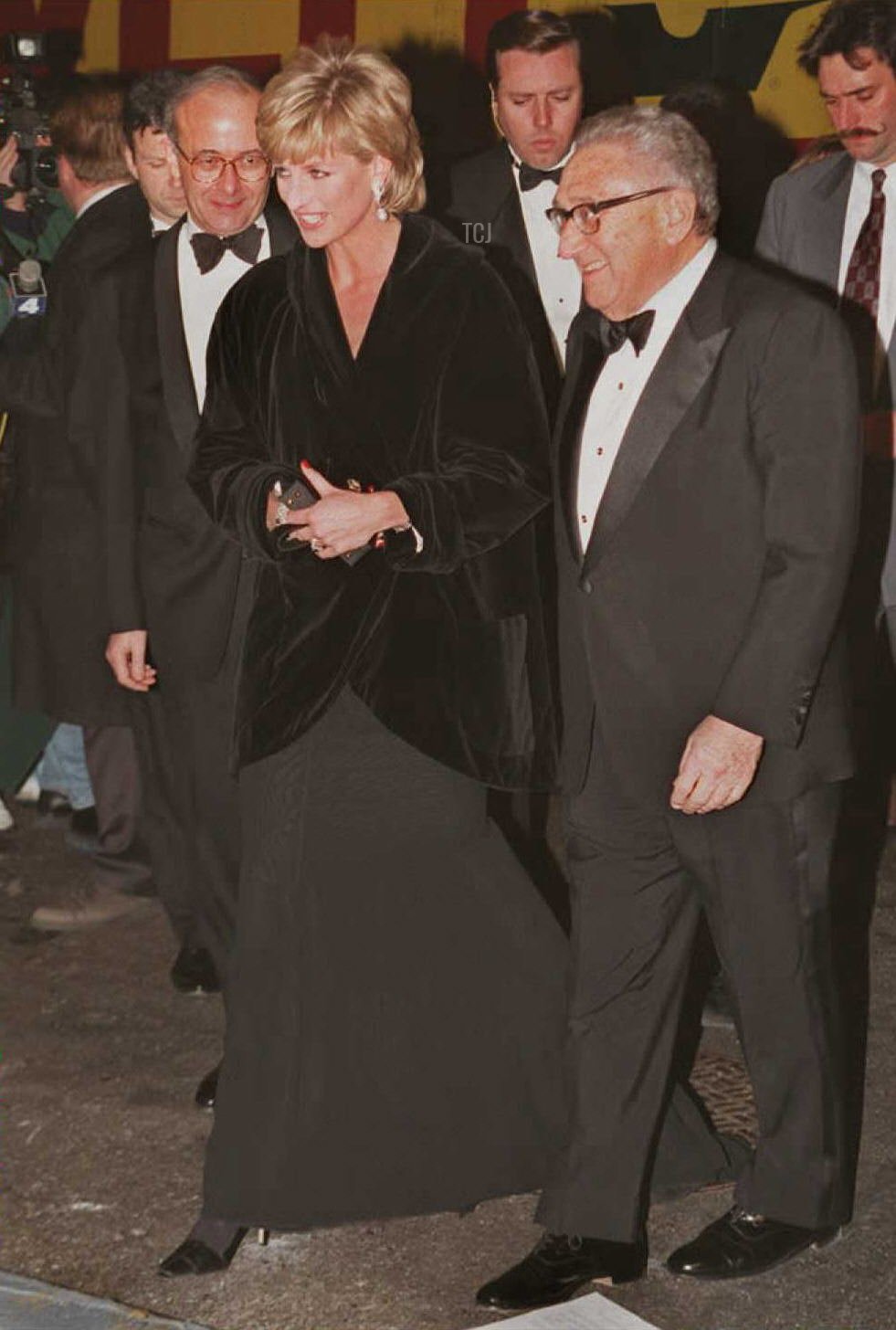 Diana arrived at the New York Hilton on December 11, 1995, for the annual United Cerebral Palsy dinner. The charity gala raised more than $2 million dollars that evening for the cause, and Diana was recognized with the organization’s humanitarian award. She wore a warm black velvet wrap as she arrived for the dinner, escorted by former US Secretary of State Henry Kissinger. General Colin Powell was also present for the dinner.