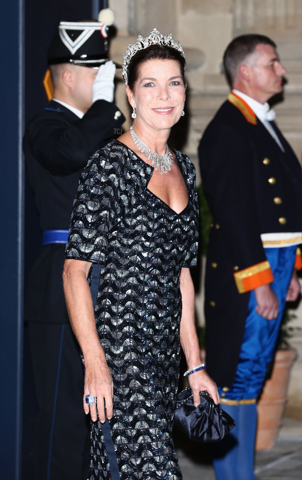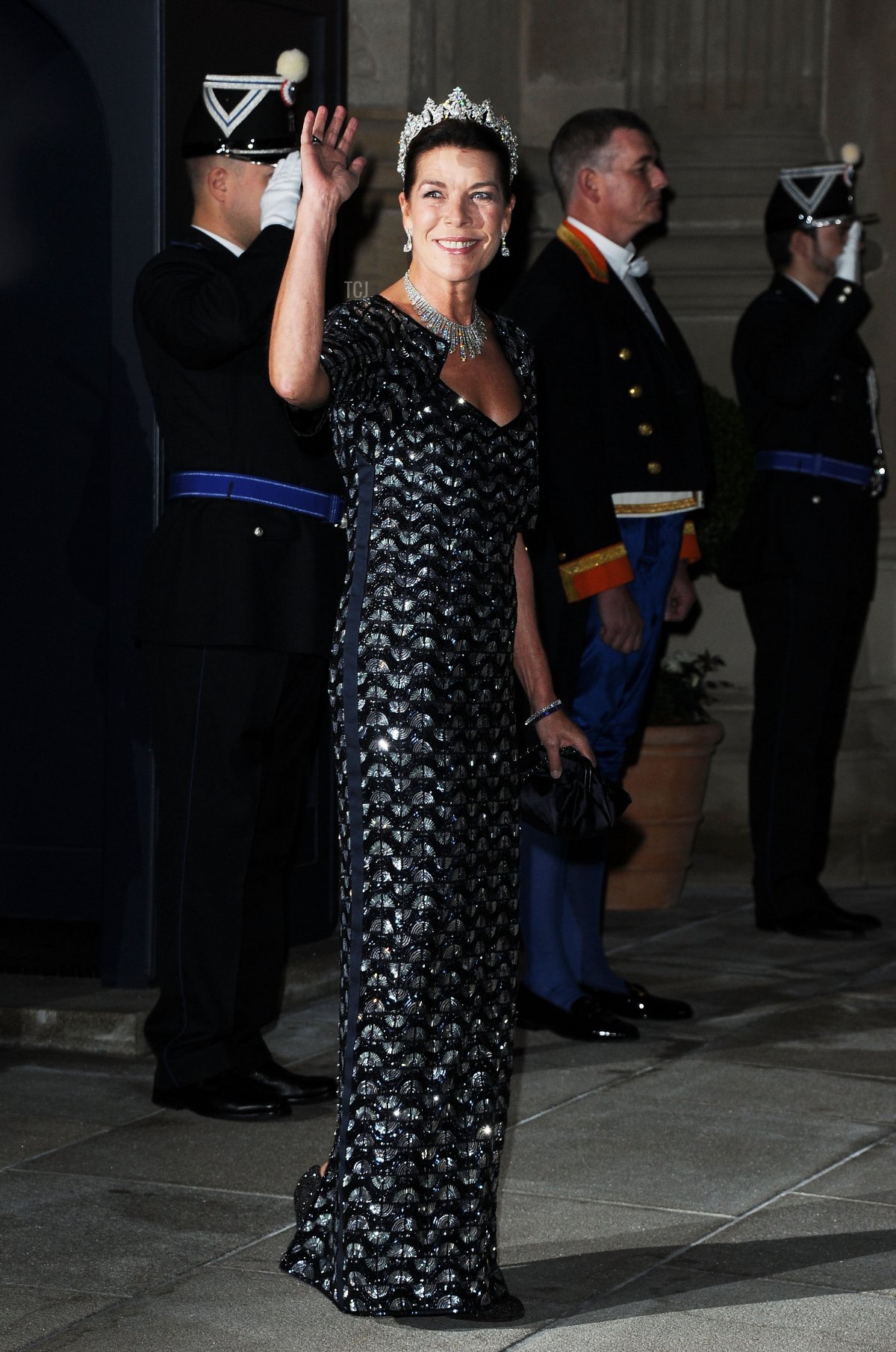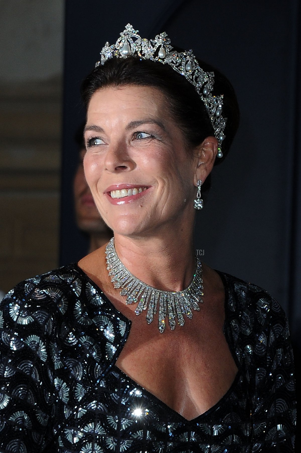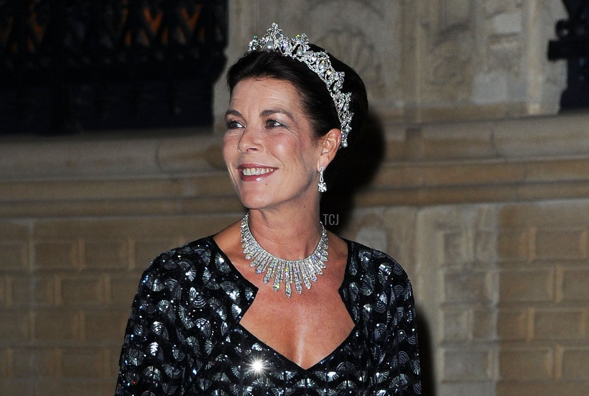 Princess Caroline of Monaco, daughter of the famed Princess Grace, represented the principality at the wedding of Hereditary Grand Duke Guillaume of Luxembourg and Countess Stephanie of Lannoy back in October 2012. For the pre-wedding gala, she reached for a pearl and diamond tiara with major Monegasque history.