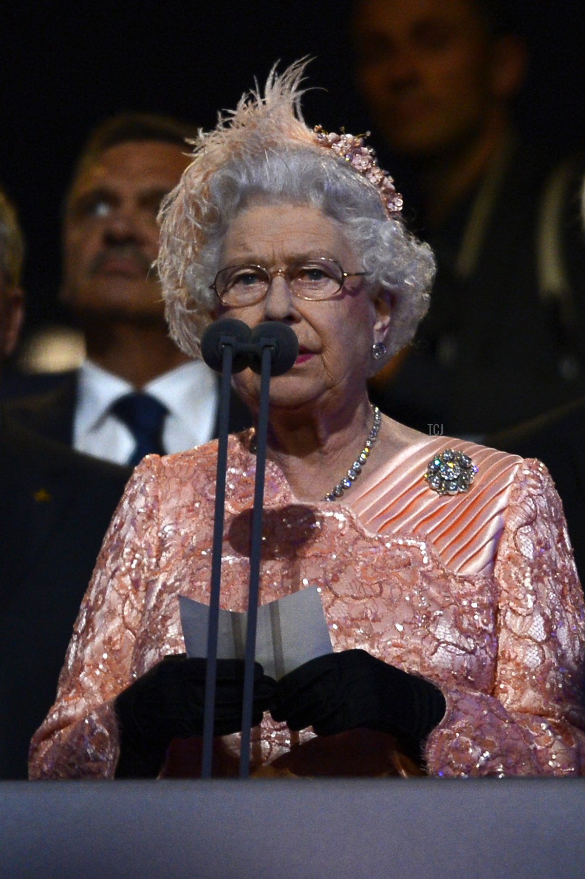 The brooch also made several appearances in 2012 and 2013, during the Queen’s Diamond Jubilee year and the celebrations of the 60th anniversary of her coronation. In July 2012, she memorably wore the brooch for the opening ceremony of the Summer Olympic Games in London. (She also wore it, of course, for the filming of that famous James Bond video shown during the opening ceremony!)