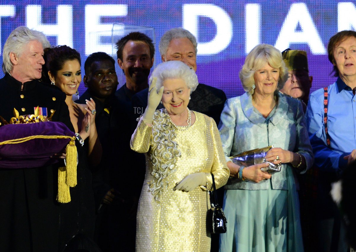 The roundup of acts for the concert was a who’s who of British pop music. Above, the Queen chats backstage with Sir Elton John, Sir Cliff Richard, Dame Shirley Bassey, Sir Tom Jones, and Sir Paul McCartney. Not too shabby!
