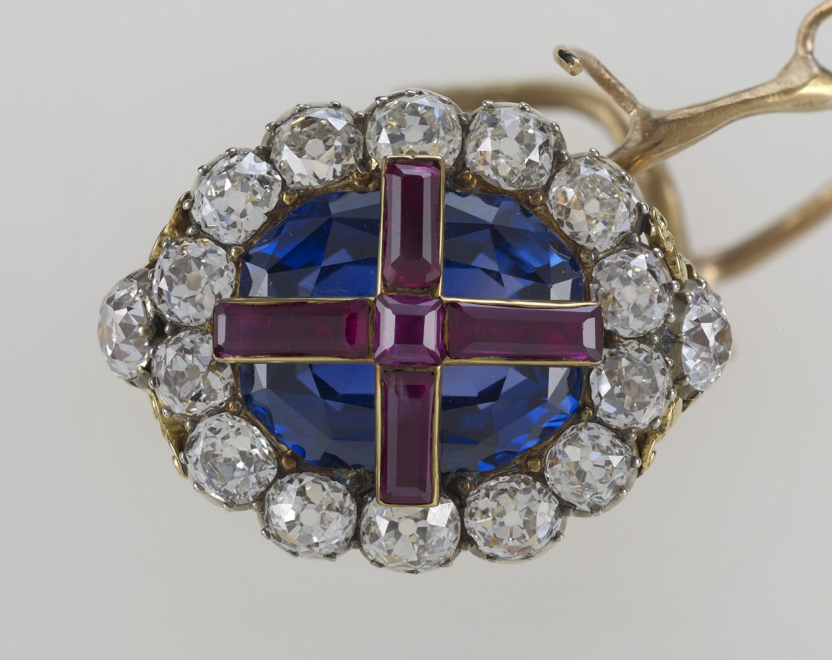 The coronation ring is sometimes called the “wedding ring of England.” Historian Anna Keay notes, “When asked about her failure to take a husband, Elizabeth I pointed to her coronation ring and said she was married to the realm of England.” For centuries, a new coronation ring was made for each sovereign to wear and keep as a personal possession. Few of the older rings survive, though many believe this one was used by King Charles II in 1661. The practice of making new rings for each coronation ended in the 1830s, and for more than a century, the Sovereign’s Ring made for William IV has been used by each new monarch.