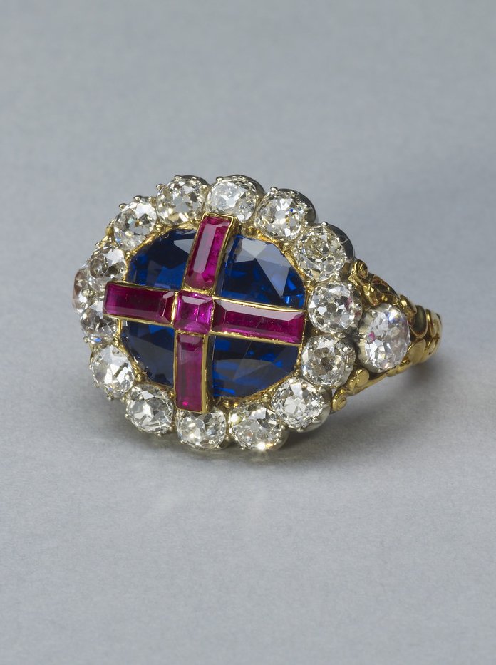 In 1837, when King William IV died, he was succeeded by his niece, Queen Victoria. As preparations began for her coronation, it was discovered that the Sovereign’s Ring (and most of the rest of the crown jewels) were far too big for her to use. A new ring, Queen Victoria’s Coronation Ring, was made just for her. It is designed to look very similar to the Sovereign’s Ring, just on a much smaller scale.