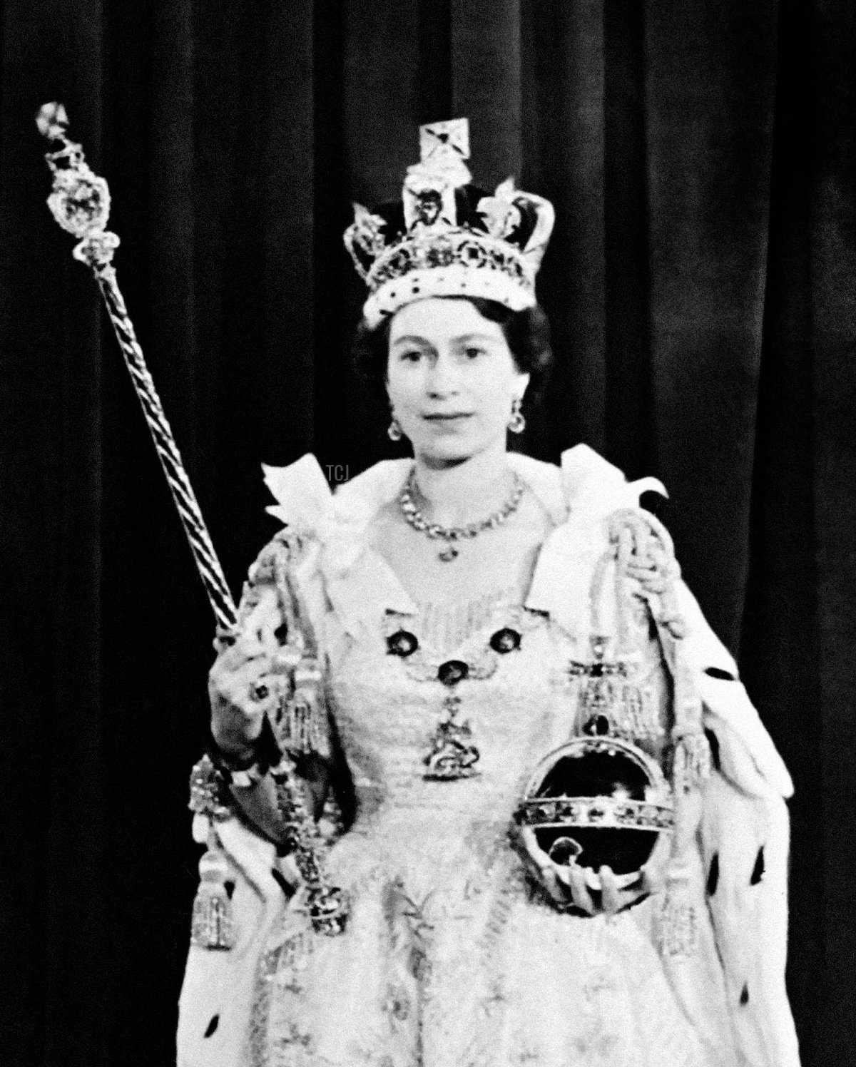 And the ring is also visible on the right hand of Queen Elizabeth II in this photograph, taken after her coronation on June 2, 1953.