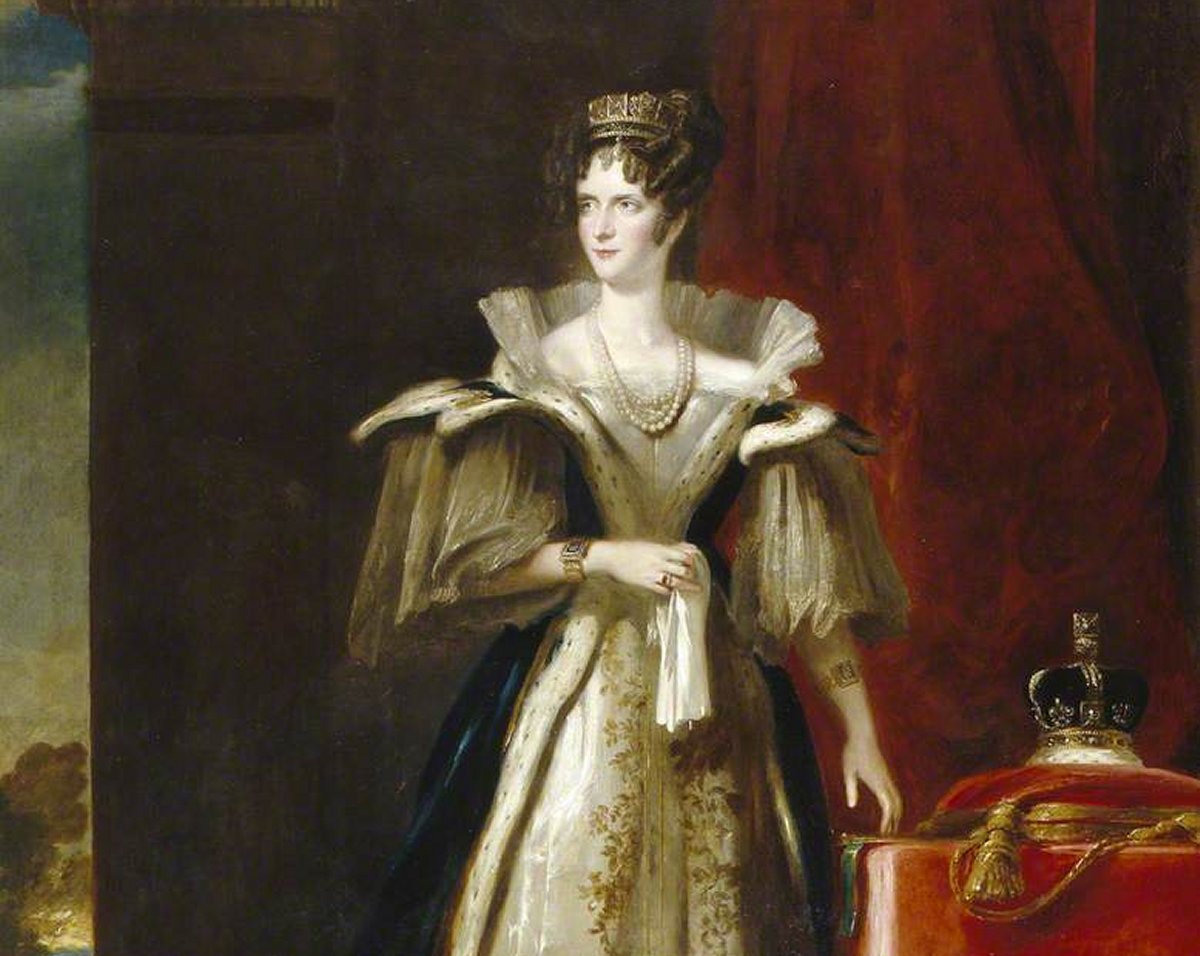 Queen Adelaide was the first queen consort to wear the ring; you’ll be able to spot it on her right hand in this portrait, painted by John Philip Simpson in 1832. (She also appears to be wearing the George IV Diamond Diadem in the portrait.)