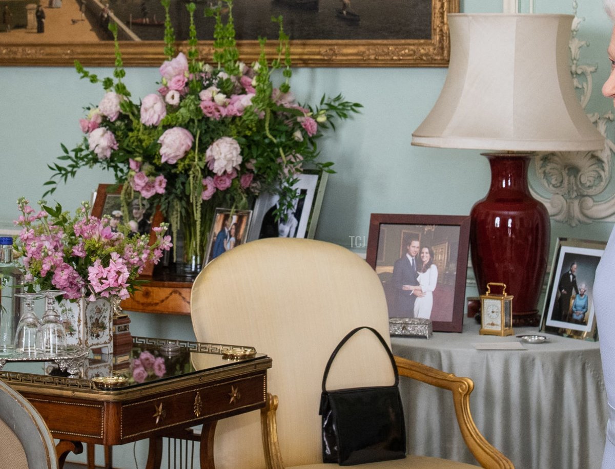 The return of in-person audiences also brings along with it the return of the traditional display of family photographs in the background. This time, photos of the Princess Royal and Sir Tim Laurence, the Duke and Duchess of Sussex, and Zara and Mike Tindall are displayed on the table on the left, while the table on the right has an engagement photograph of the Duke and Duchess of Cambridge beside a portrait of the Queen and the Prince of Wales.