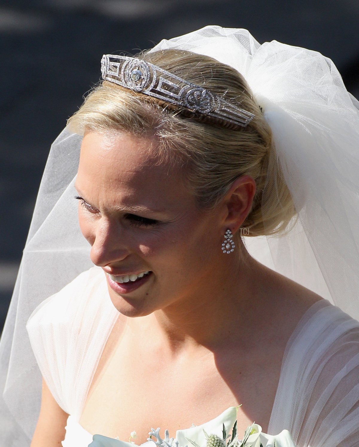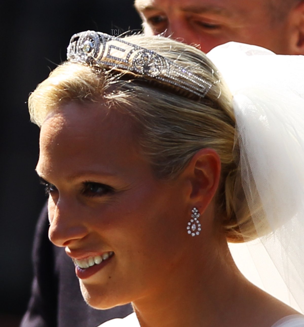 The tiara wasn’t the only piece of jewelry that Princess Anne loaned to Zara for the wedding. Zara also borrowed a pair of diamond frame earrings from her mother for the occasion.