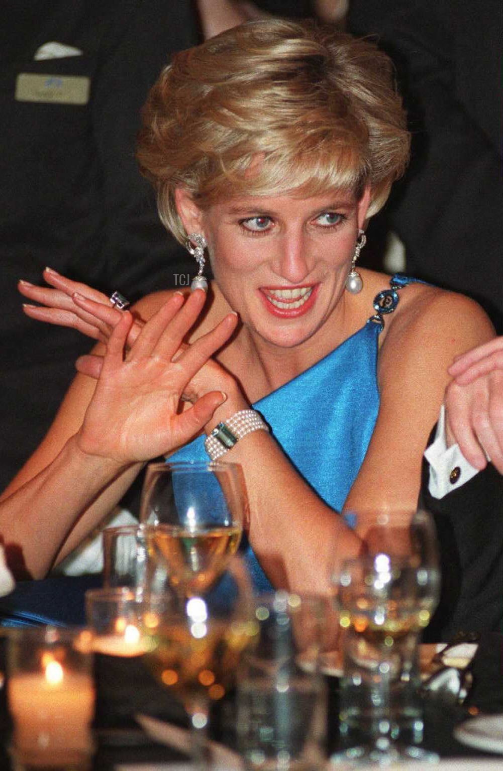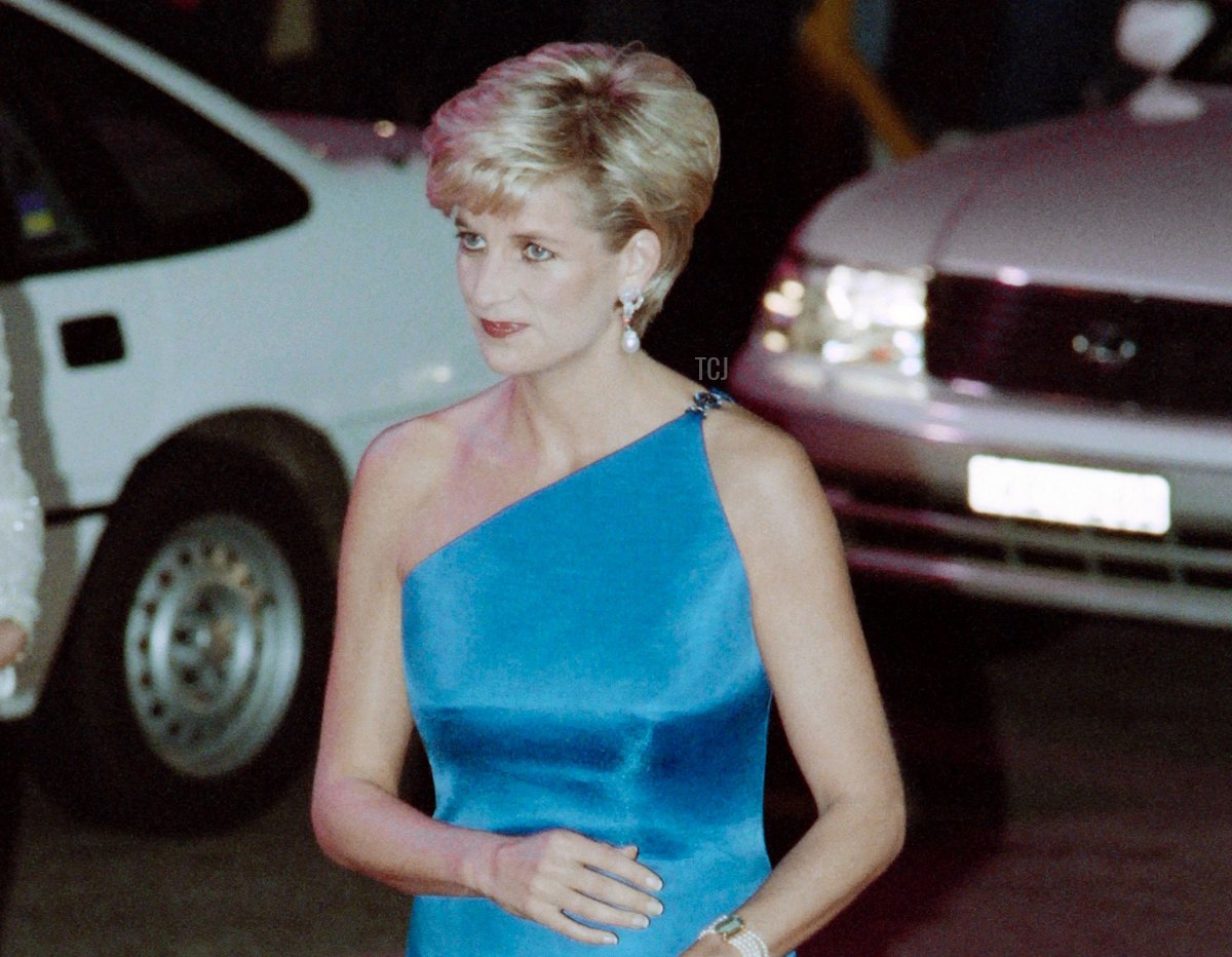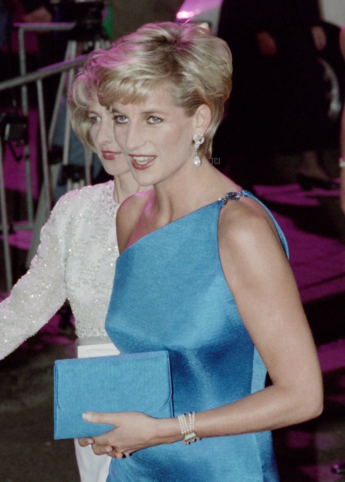 Diana arrived on the red carpet at the Sydney Entertainment Centre on October 31, 1996, for a fundraising gala for the Victor Chang Cardiac Research Institute. She wore a Versace gown that some reporters described as “electric blue,” with a matching clutch bag and shoes.