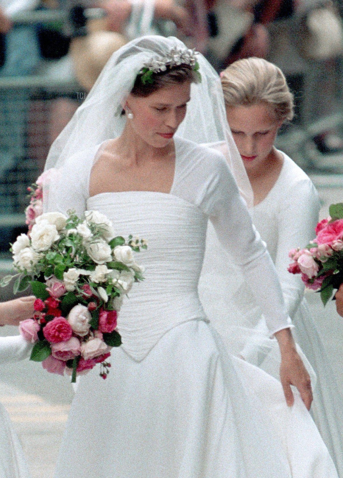 Daniel and Sarah were married at St Stephen Walbrook, a church in the city of London that was designed by Sir Christopher Wren. At the time of the wedding, which took place on July 14, 1994, the rector of the church was Dr. Chad Varah, an important social activist who founded the Samaritans, the world’s first crisis hotline. Sarah was attended by a trio of bridesmaids: her half-sister, Lady Frances Armstrong-Jones; her cousin, Zara Phillips; and a family friend, Tara Noble-Singh.