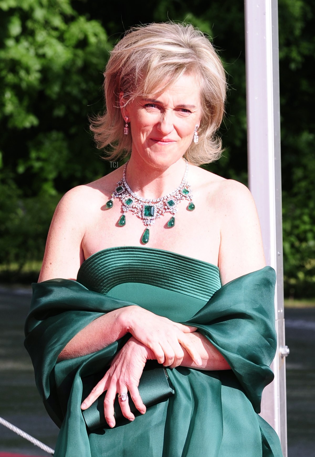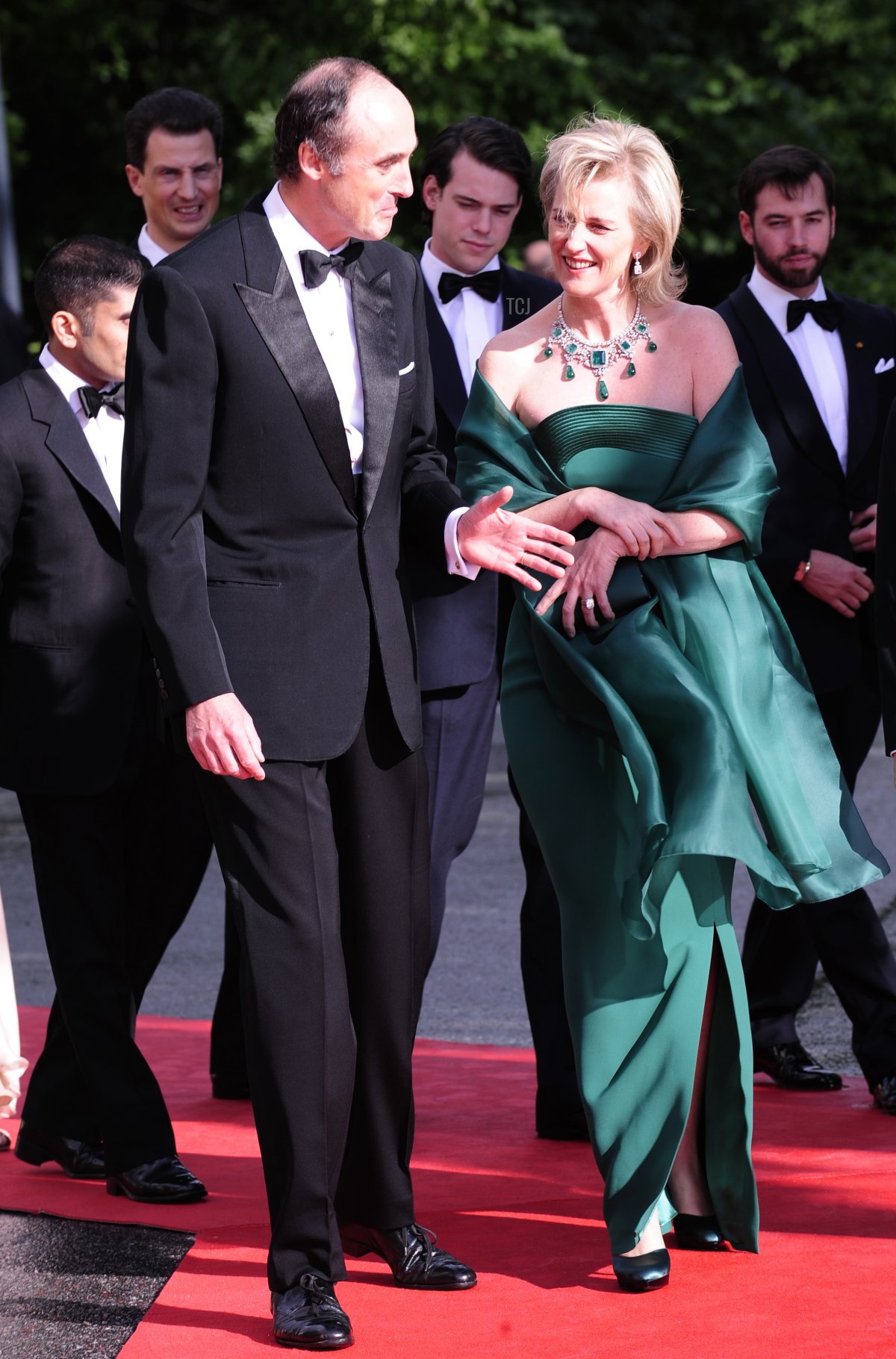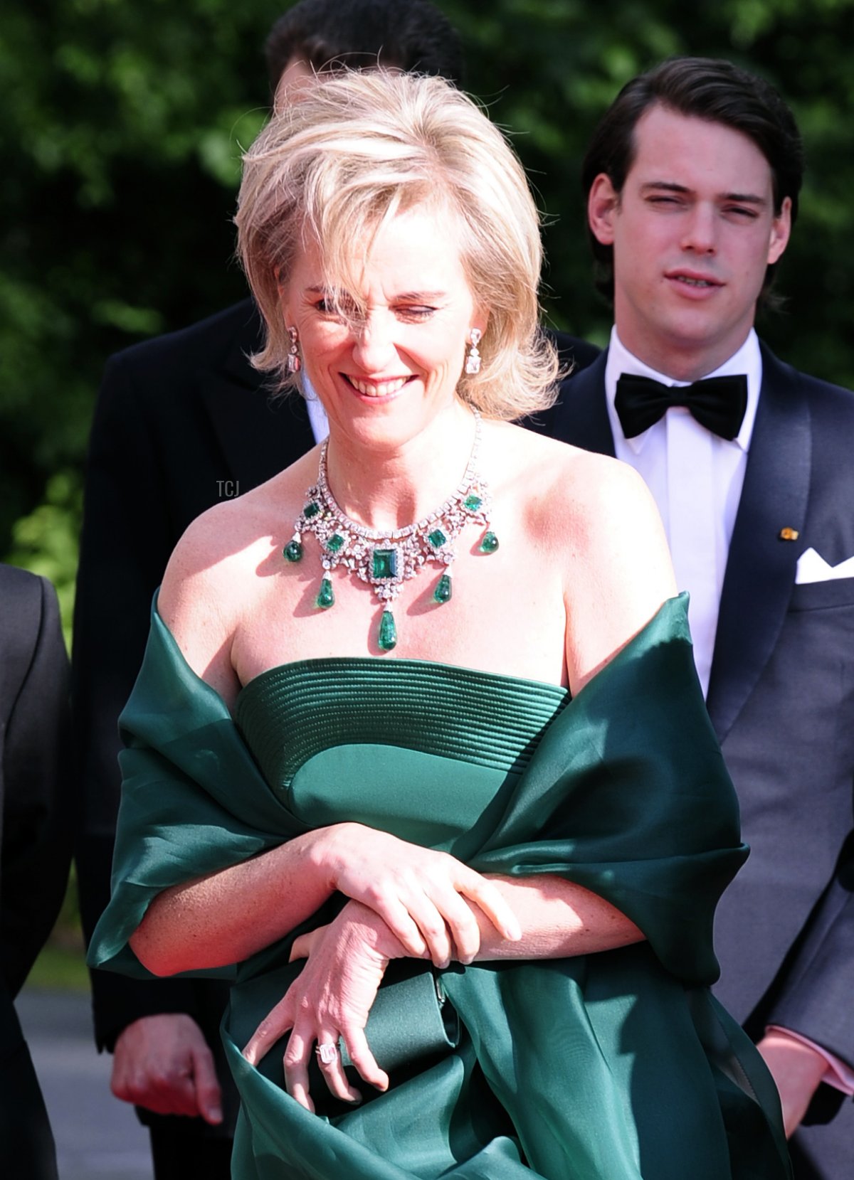 Prince Lorenz and Princess Astrid of Belgium attended the pre-wedding dinner and concert for Crown Princess Victoria and Prince Daniel of Sweden on June 18, 2010. Lorenz is the son of a Habsburg archduke and an Italian princess. This incredible emerald necklace comes from the collection of his mother, Margherita of Savoy-Aosta.