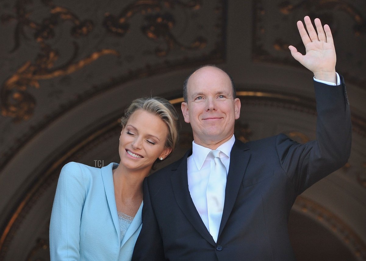 The half-married newlyweds greeted the people of Monaco from the balcony of the Palais Princier after the civil service.