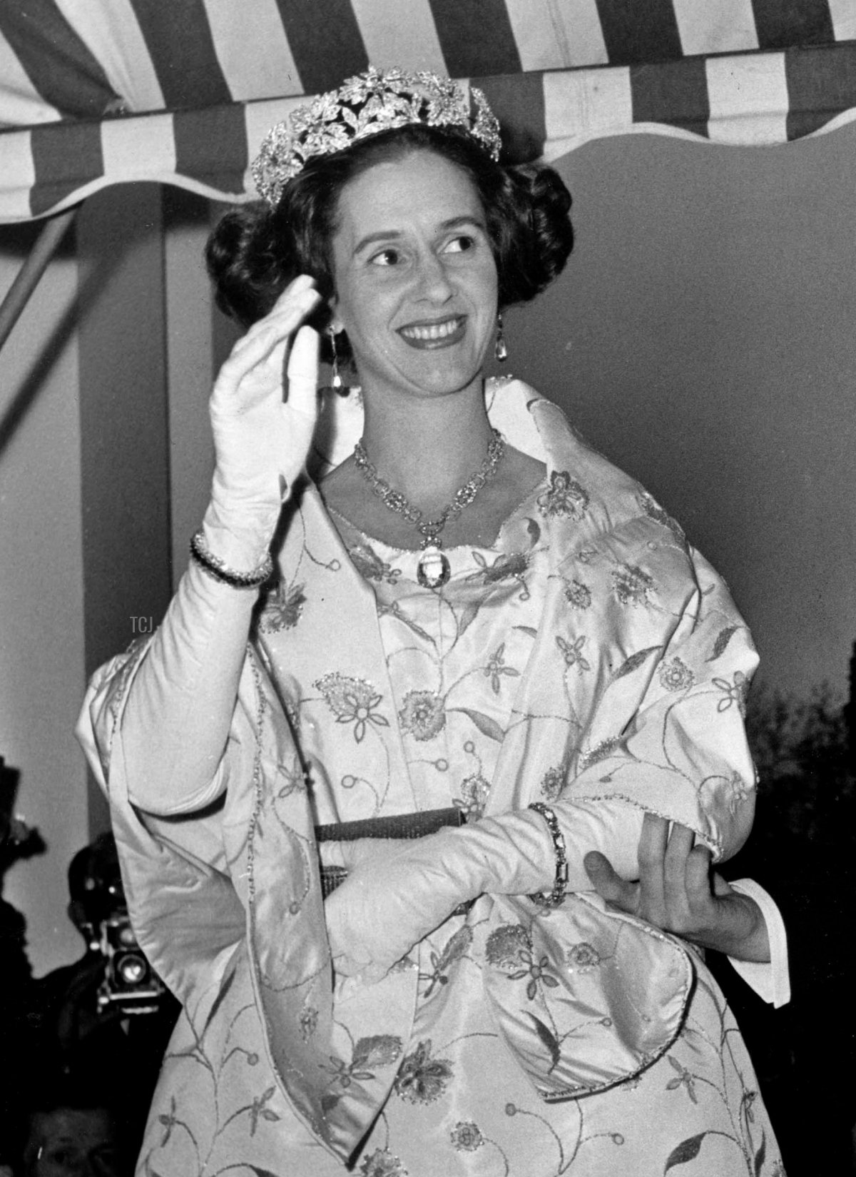 This week, the people of Belgium celebrate their country’s National Day, and we’re joining in the festivities with a week’s worth of glittering jewels worn by the ladies of the Belgian royal family. First up: a sparkling state visit appearance from Queen Fabiola, nearly 60 years ago!