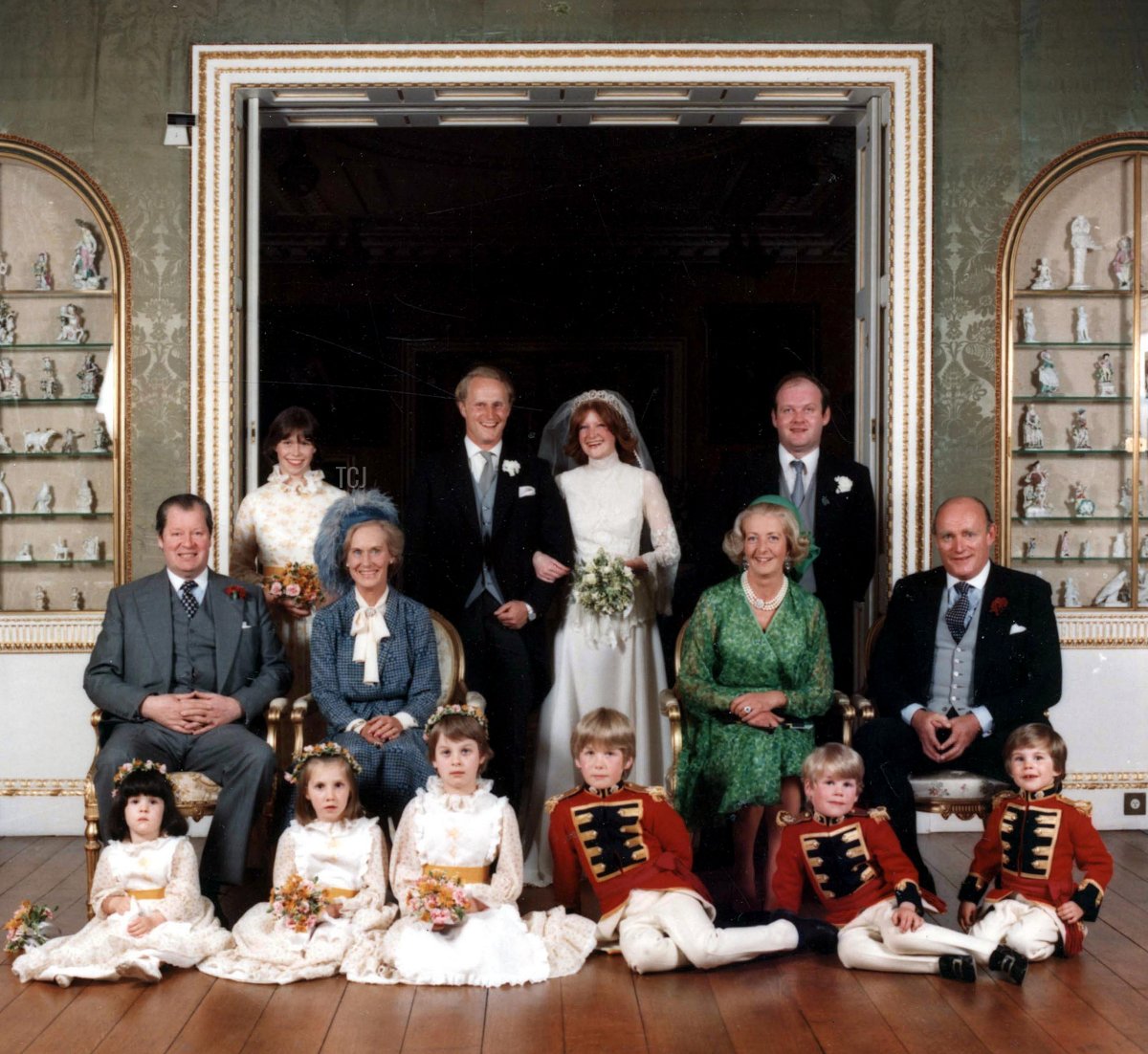 Lady Sarah Spencer, the eldest of the four, also wore the glittering Spencer Tiara on her wedding day. She married Neil McCorquodale on May 17, 1980, in the village of Great Brington in Northamptonshire, near the family’s Althorp estate. You’ll also spot a Windsor in this wedding group: one of the bridesmaids was Lady Sarah Armstrong-Jones, daughter of Princess Margaret. Sarah and Neil are still married today, with three children and five grandchildren.