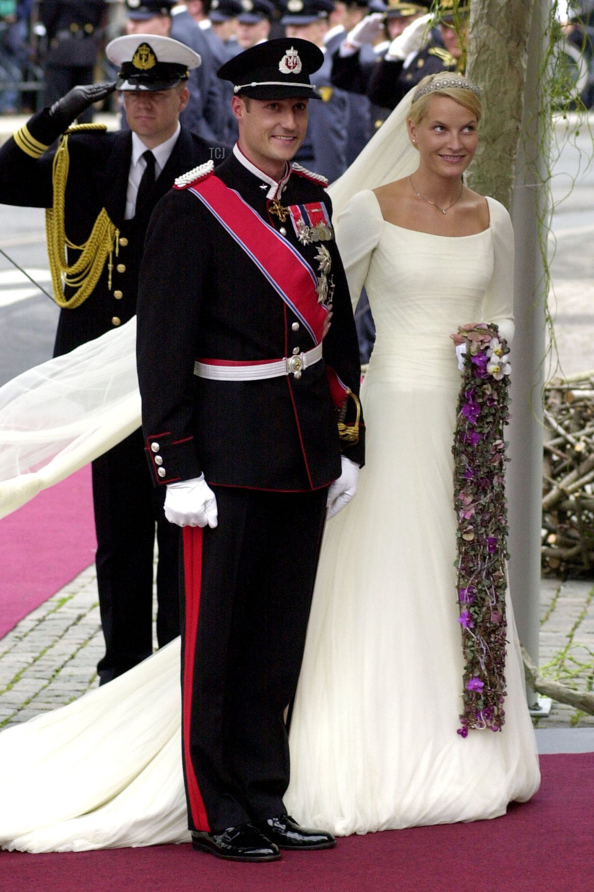 On August 25, 2001, Crown Prince Haakon married Mette-Marit Tjessem Høiby at Oslo Cathedral. The couple’s love story was often compared to the fairy tale Cinderella. Crown Prince Haakon will one day inherit the Norwegian throne. Mette-Marit, by contrast, was a waitress and a single mother when she met Haakon at a Norwegian music festival in 1999. When their relationship became public, many Norwegians expressed concerns about Mette-Marit’s past. But Haakon stood firm, supported by his parents, and the couple announced their engagement in December 2000.
