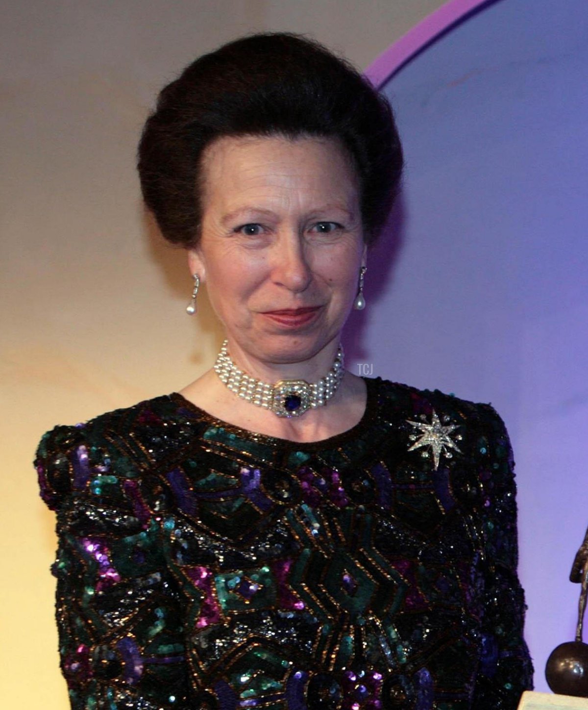 Anne often likes to pair the brooch with another spectacular piece from her jewelry box: Empress Marie Feodorovna’s Pearl and Sapphire Choker Necklace. Queen Mary bought the necklace from the late Russian empress’s estate and bequeathed it to the Queen in 1953. Anne has been exclusively wearing the necklace for decades. Above, she pairs the choker and the star brooch together in Sydney in July 2000.
