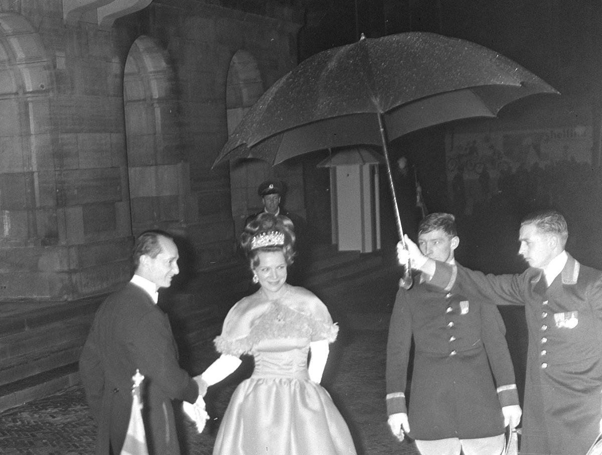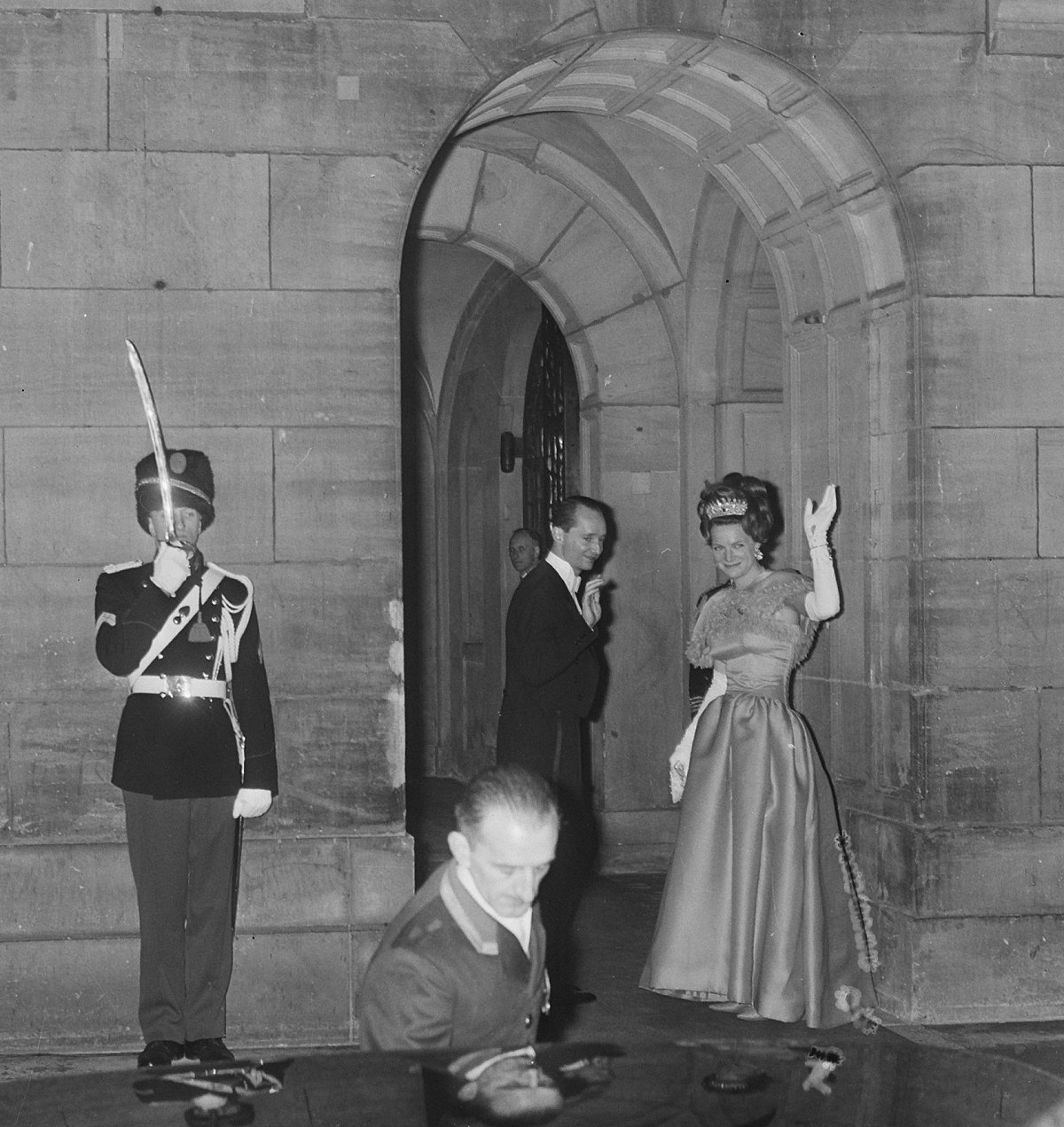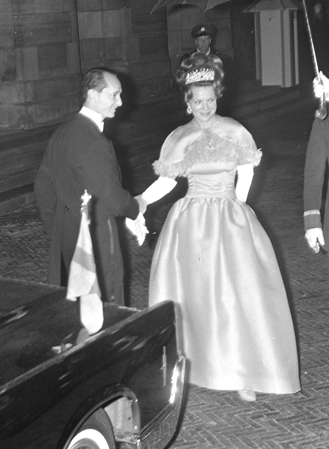 On March 8, 1966, royals from across Europe attended a pre-wedding ball in honor of Princess Beatrix and her German fiancé at the Royal Palace in Amsterdam. Though less scandalous than Irene and Carlos Hugo’s nuptials two years earlier, this Dutch royal wedding wasn’t without controversy. The fact that Claus was German caused some consternation on the part of the Dutch people, who well remembered their treatment during World War II. During this ball, a smoke bomb was detonated outside the palace in Dam Square. No one was injured, and the ball continued as planned.