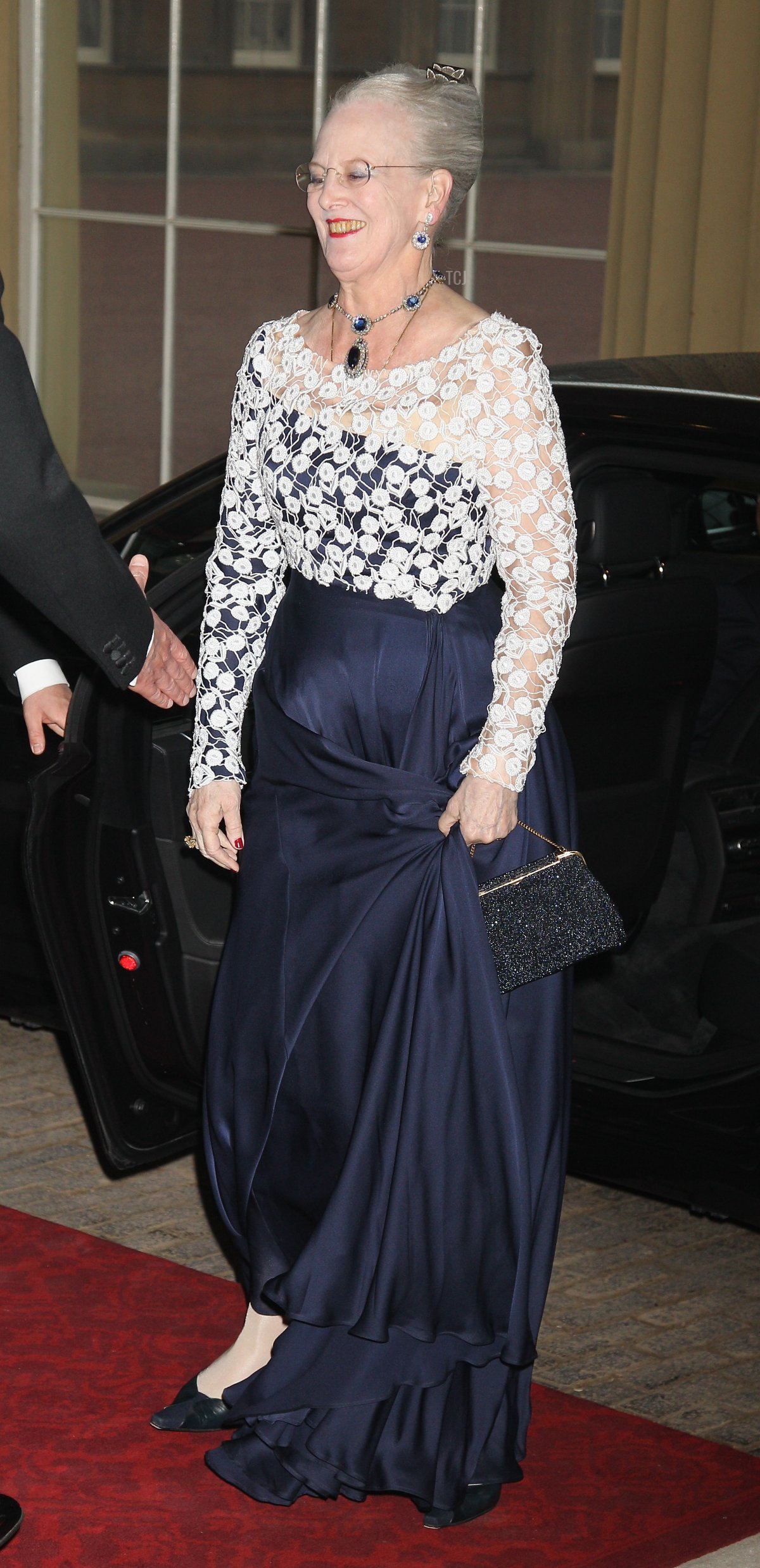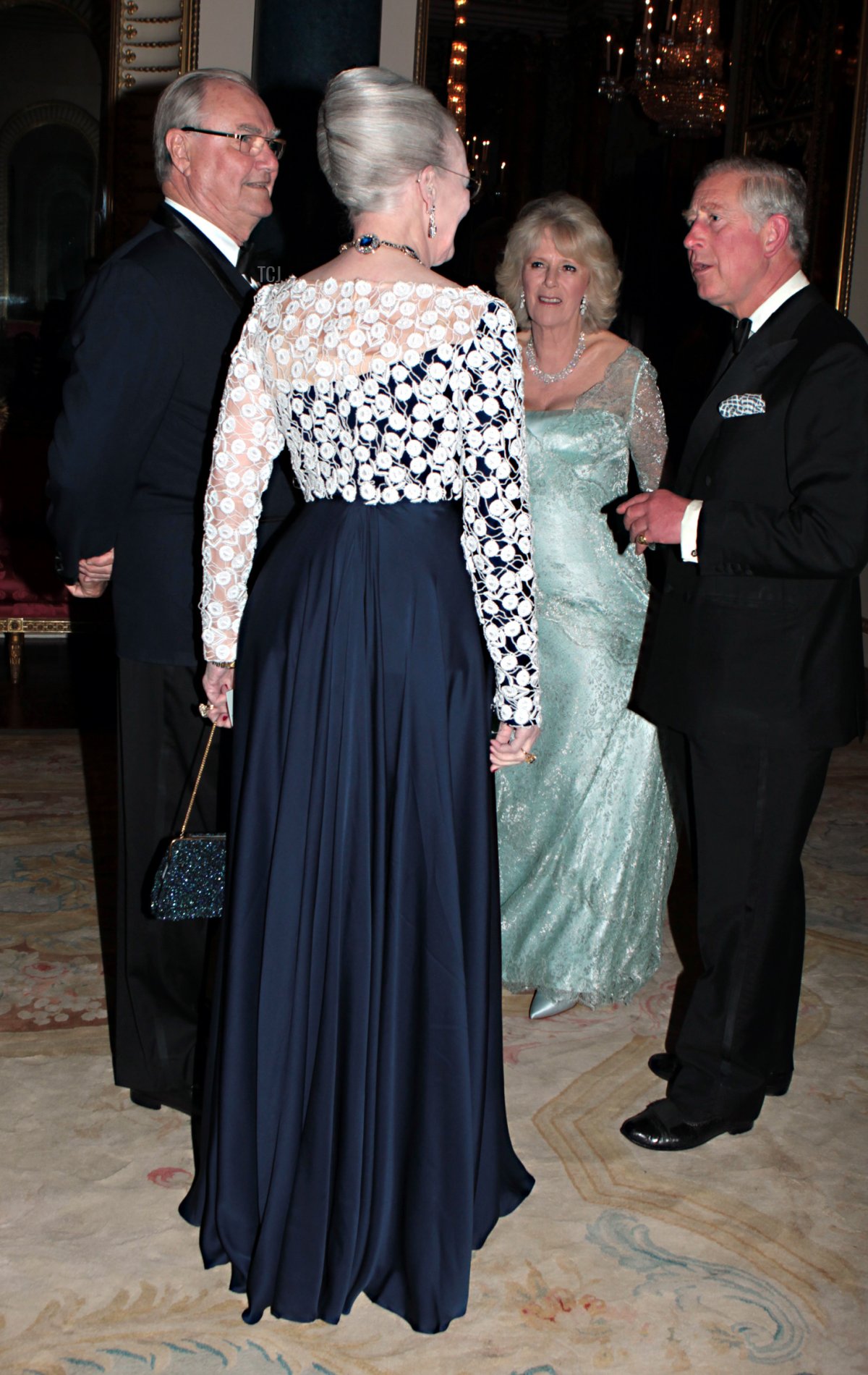 On May 18, 2012, Queen Margrethe and Prince Henrik of Denmark arrived at Buckingham Palace in London for a very special occasion. The Prince of Wales and the Duchess of Cornwall hosted them, along with foreign sovereigns from around the world, for a dinner at the palace during the celebrations of Queen Elizabeth II’s Diamond Jubilee.