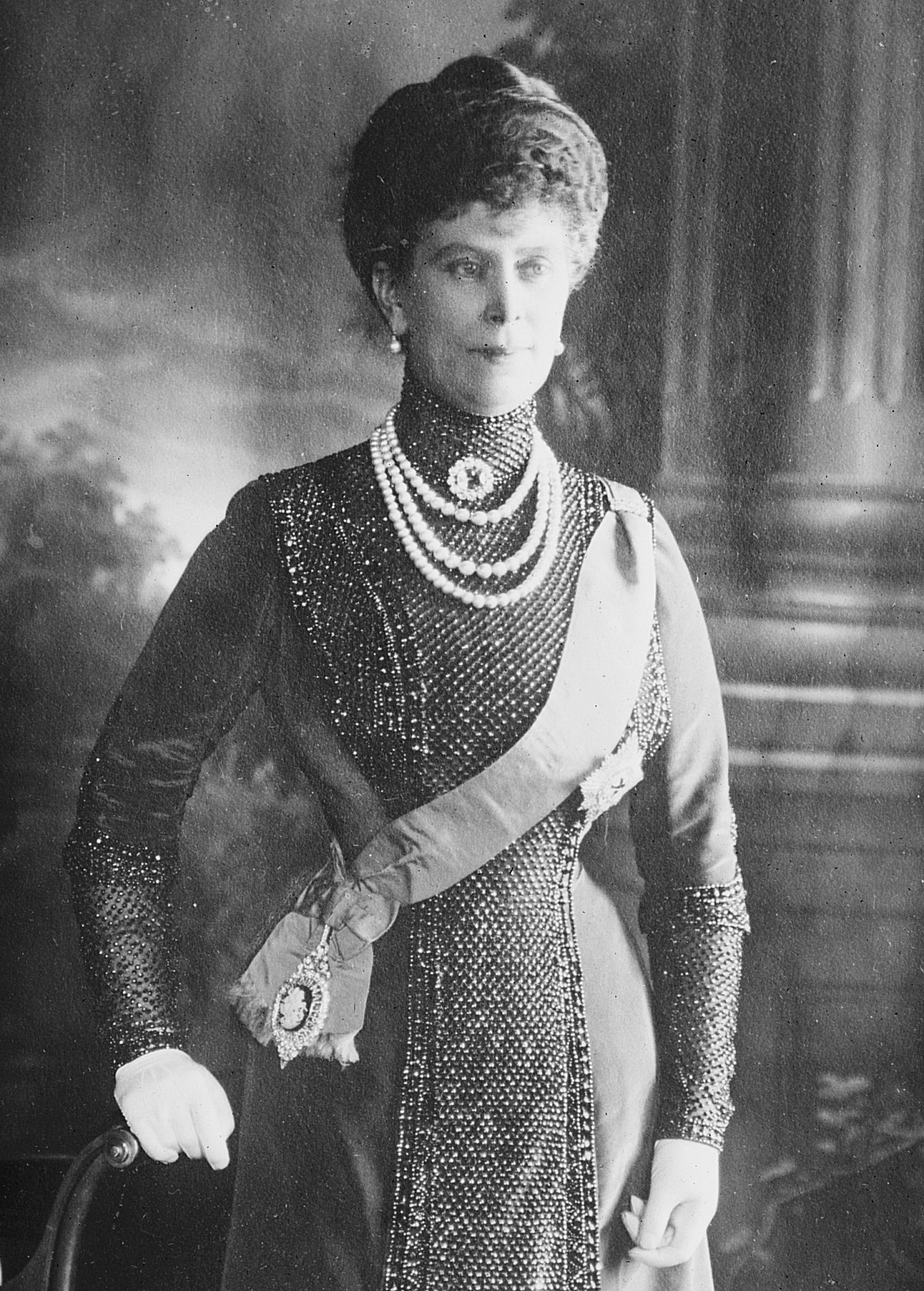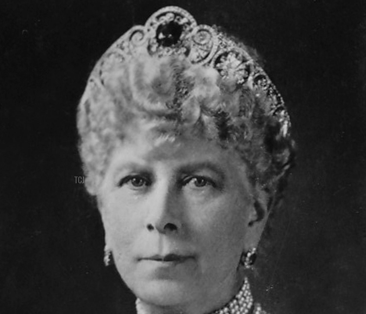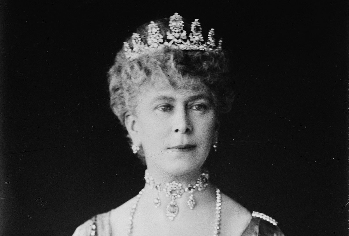 When Mary’s husband became king in 1910, they inherited a collection of jewels known as “heirlooms of the crown.” Among these pieces, which are earmarked for the use of the queen (regnant or consort), was Prince Albert’s Brooch. The diamond and sapphire cluster was presented to Queen Victoria by Prince Albert on the night before their royal wedding in 1840. It’s been worn by each British queen since. Above, Queen Mary wears it for an official photograph taken in July 1911.