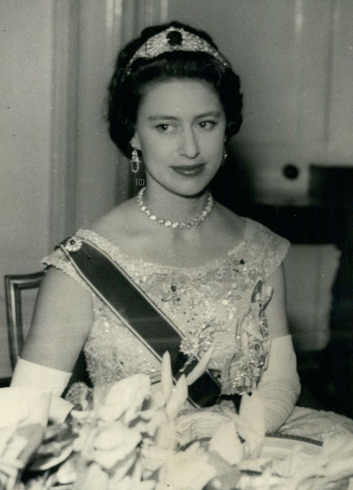 According to royal jewelry historian Leslie Field, Queen Mary also purchased this bandeau-style tiara from the estate of the late Empress Marie Feodorovna. She wore it with a diamond and sapphire center ornament (also used with her honeysuckle tiara), and occasionally swapped that out for the carved emerald brooch from the Delhi Durbar Parure. Field writes that the Queen Mother inherited the tiara. It was worn most recently by Princess Margaret, who also wore the sapphire center element separately as a brooch.