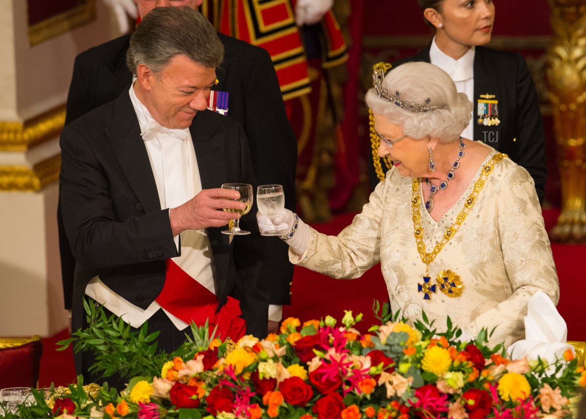 On November 1, 2016, the Queen and the Duke of Edinburgh hosted the President and First Lady of Colombia for a grand state banquet at Buckingham Palace. It was part of a banner season for President Juan Manuel Santos, who had also recently been named the winner of the 2016 Nobel Peace Prize.