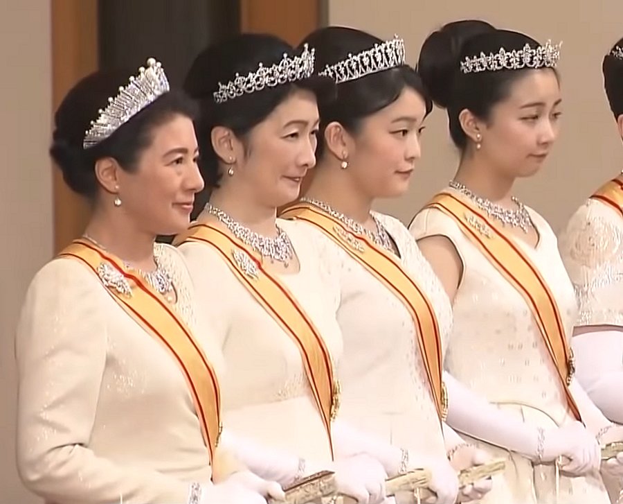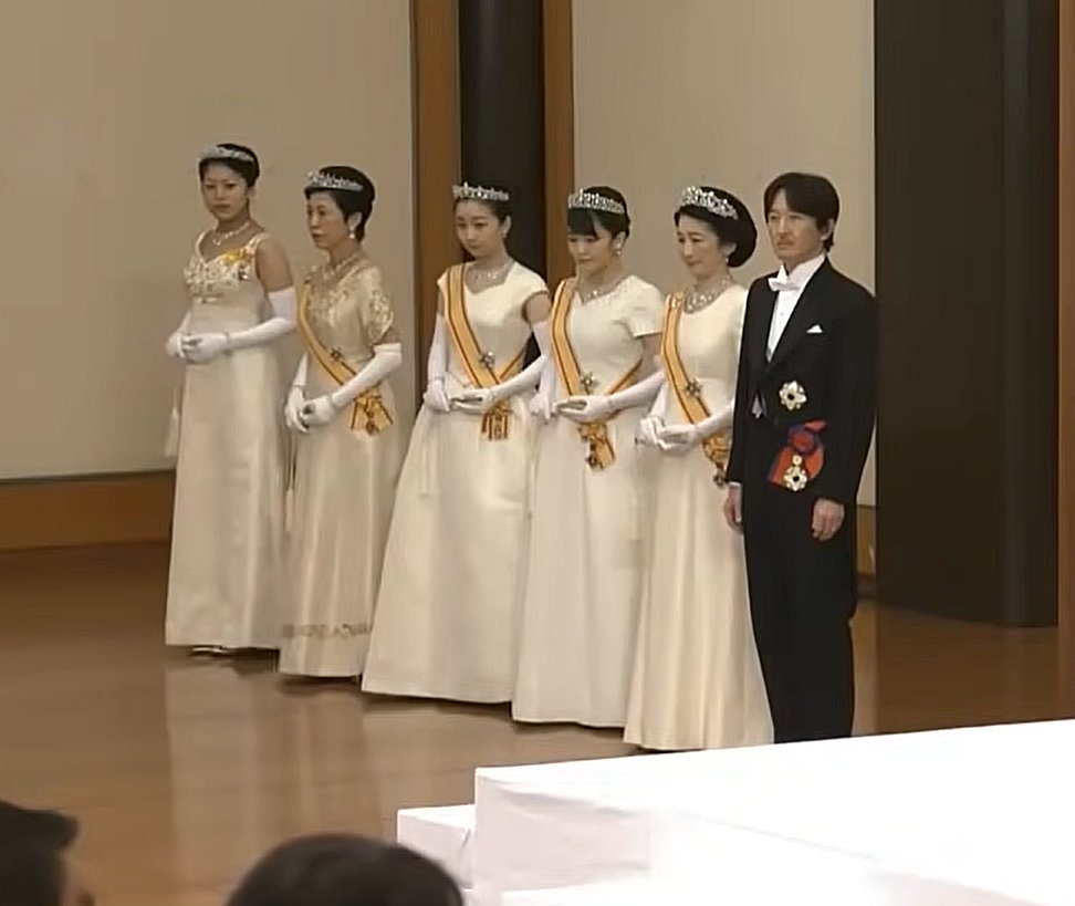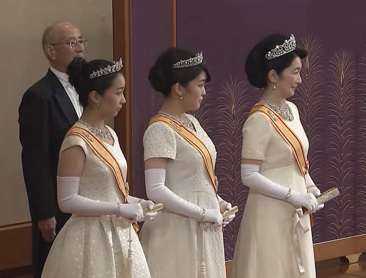 She stood with the other imperial princesses, wearing court dress and diamonds, for the New Year celebrations in January 2020.