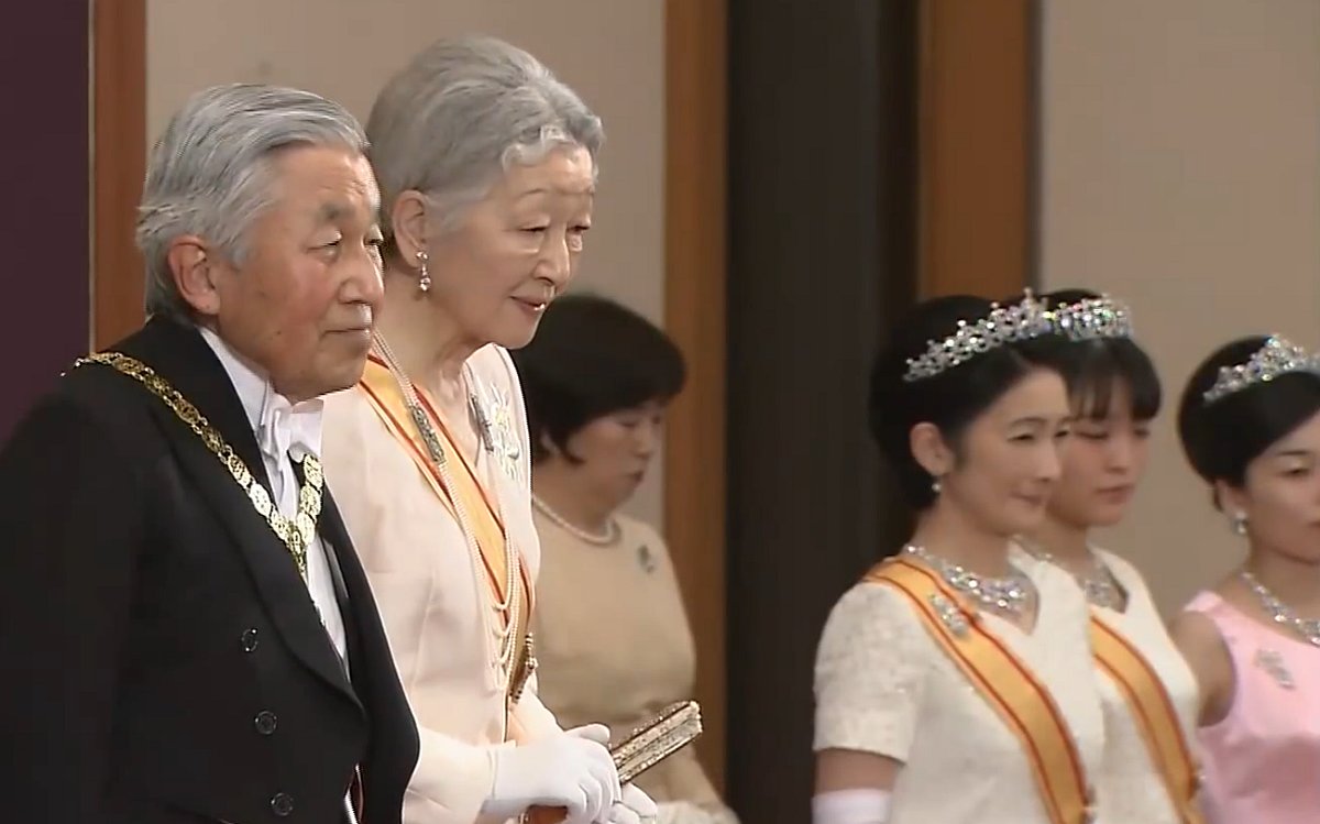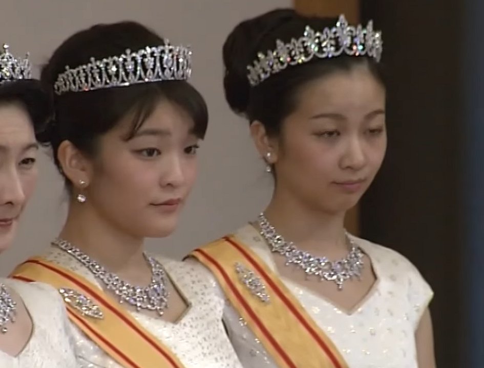 Here’s a slightly closer look at Princesses Mako and Kako from the New Year celebrations in January 2017. Even the court dresses are the same! The Imperial Household Agency, which runs the Japanese monarchy, likes order and continuity, to put it mildly.