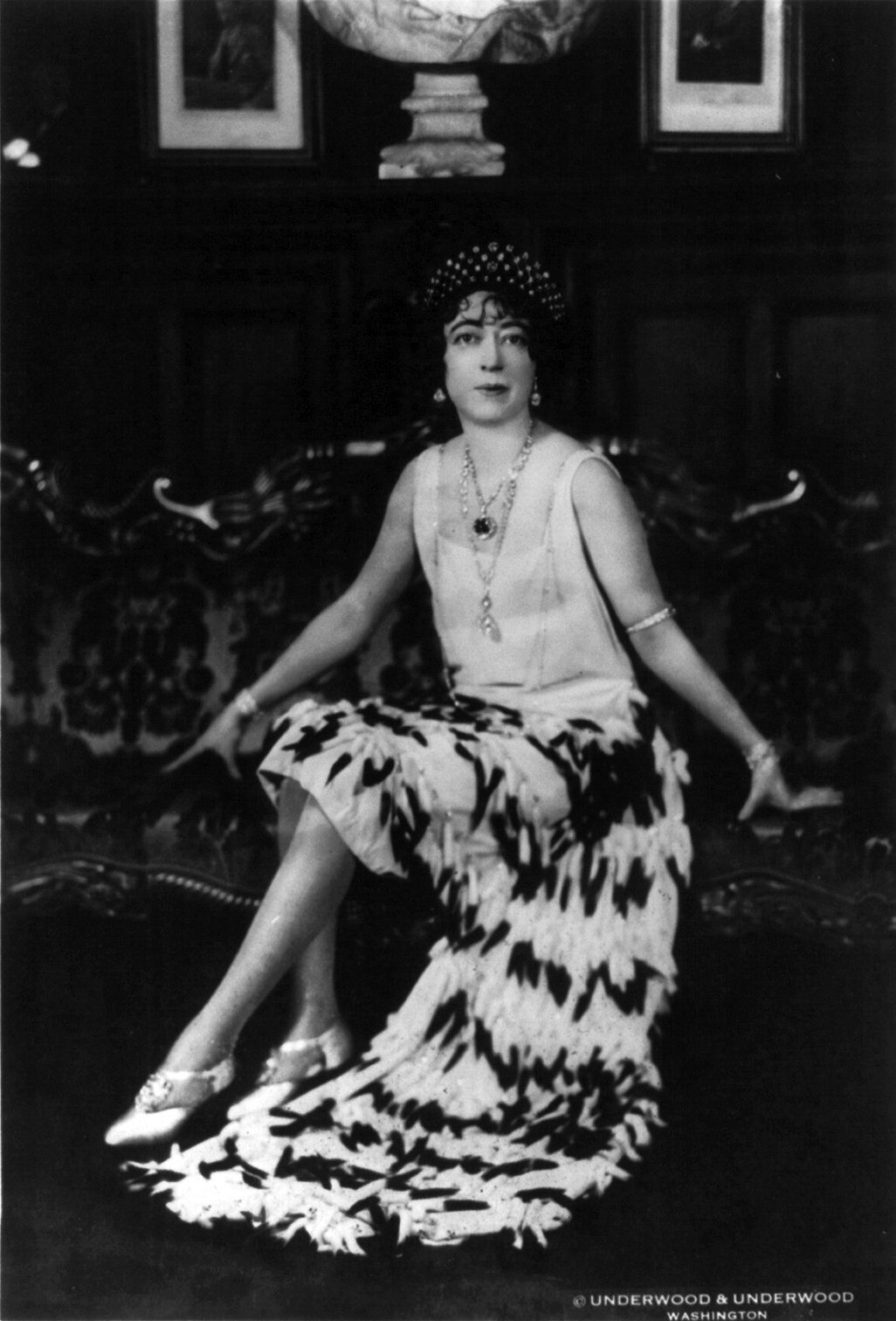 Through it all, Evalyn continued to wear the diamond, as well as all of her other incredible sparkling jewels. This photograph, taken in 1936, is from the Library of Congress collection. The archival caption reads, “Mrs. E.B. McLean, with her Hope diamond and a armload of jewels seems to be deep in thought as to where her next load of diamonds are coming from.”
